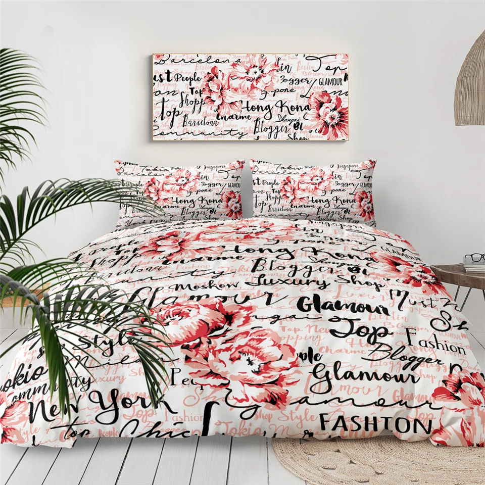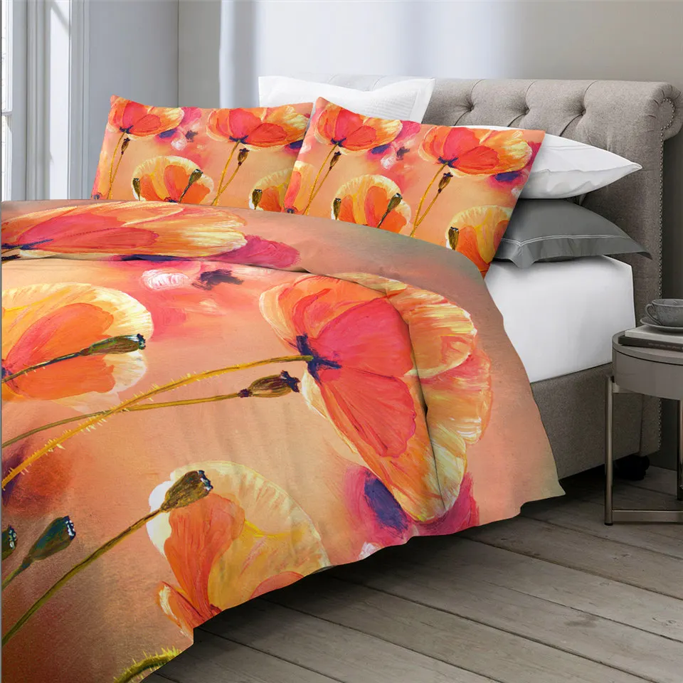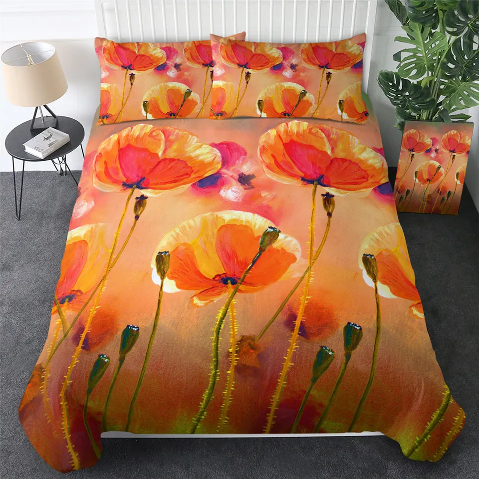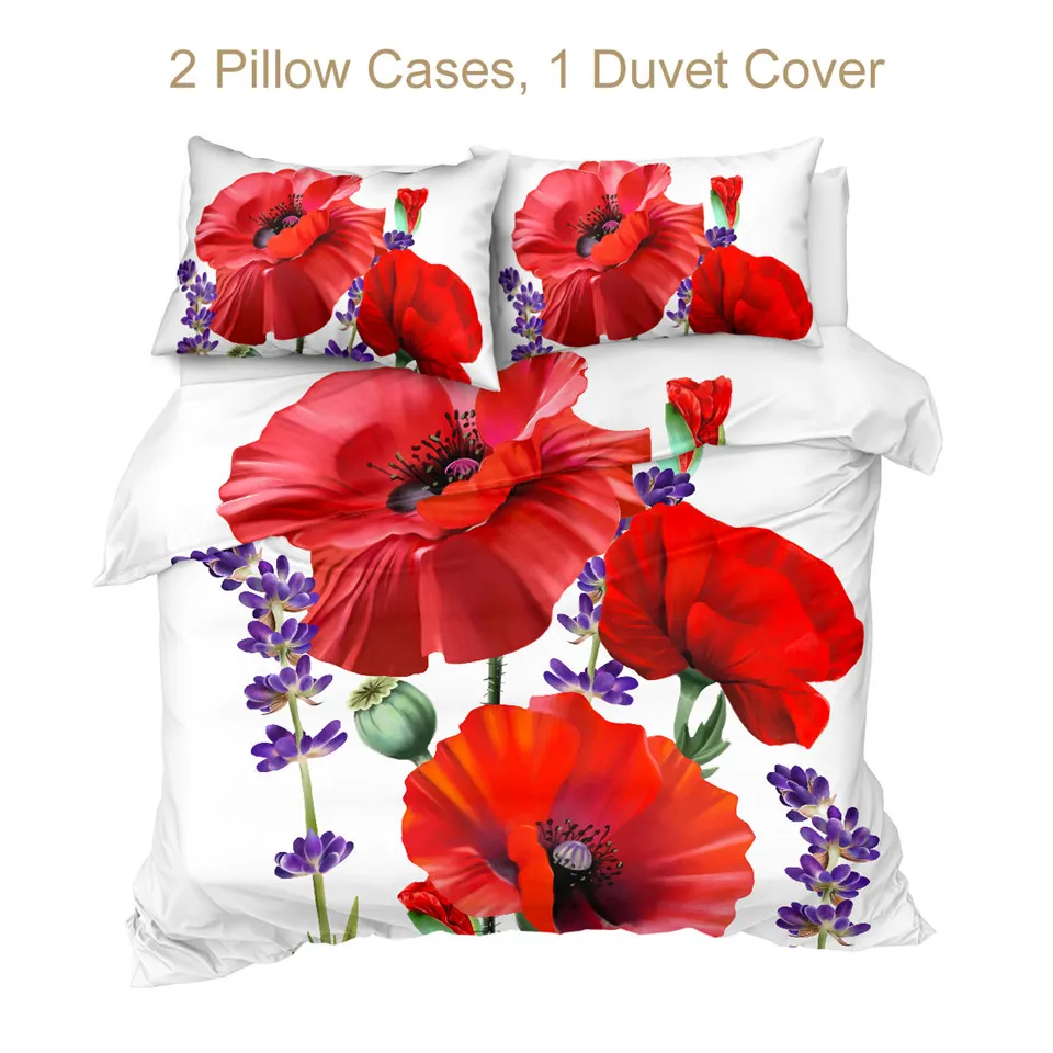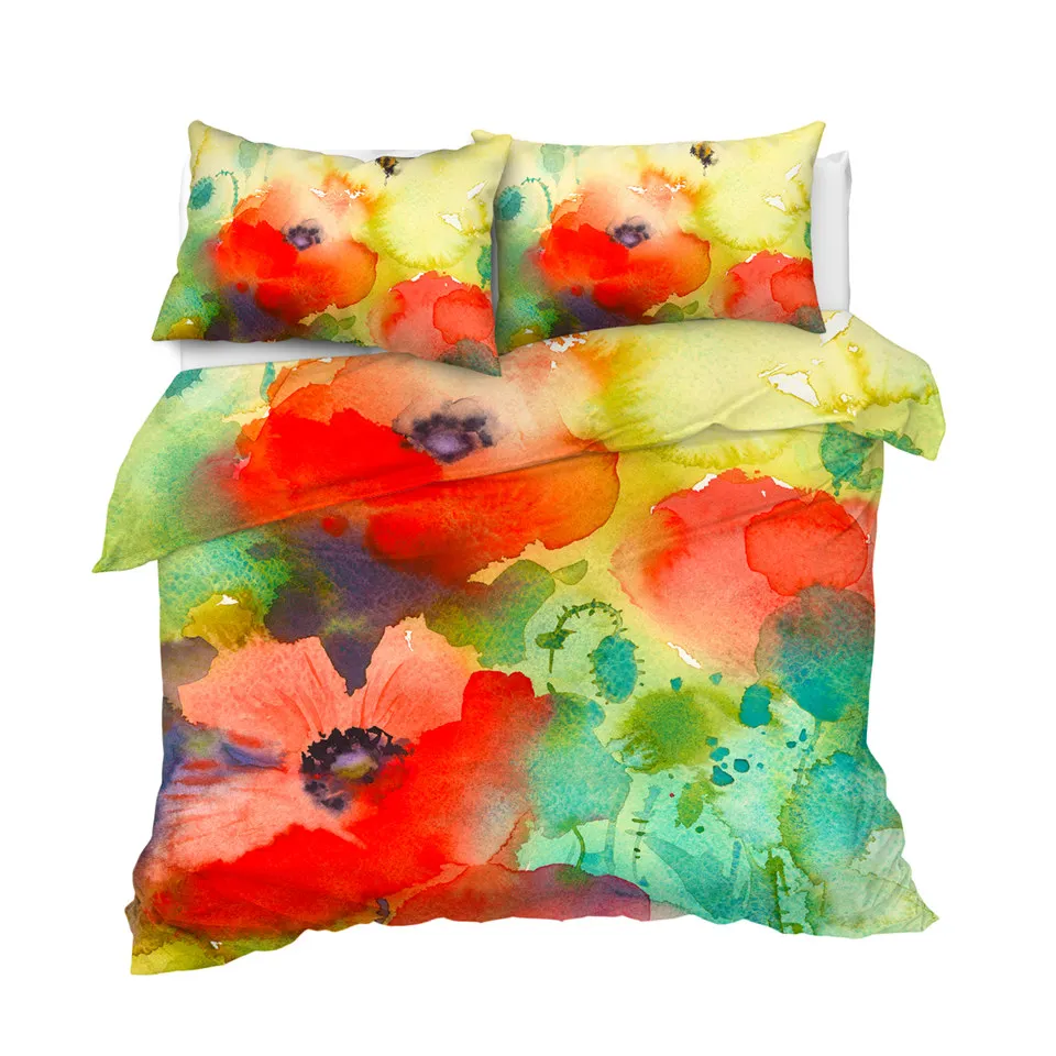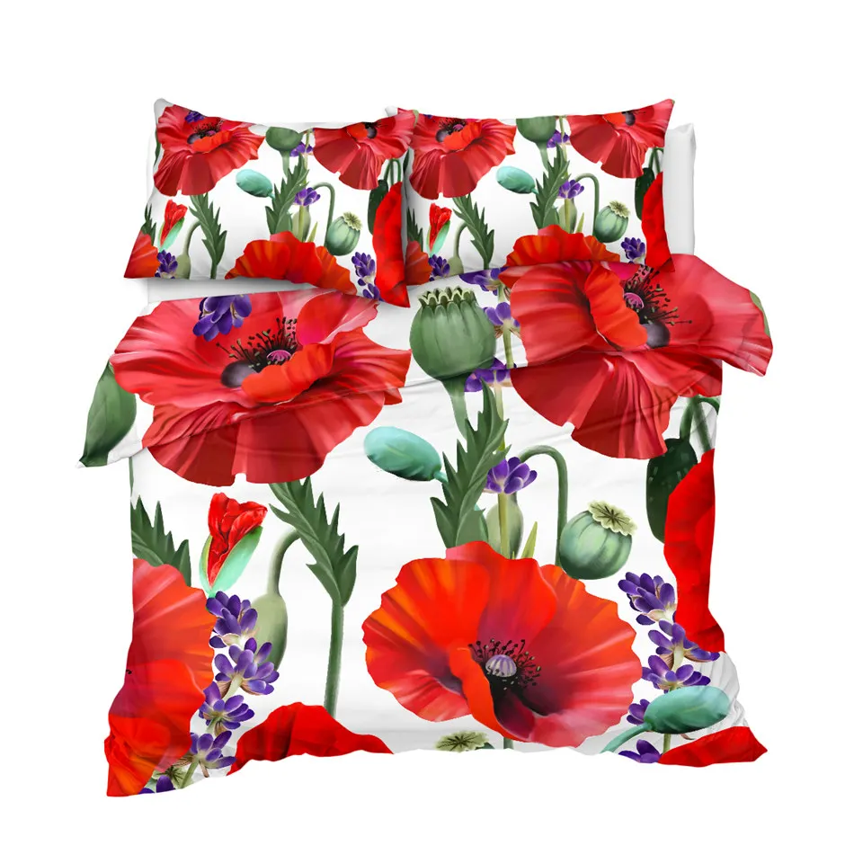 Комплект постельного белья BeddingOutlet с красным маком, пододеяльник с цветущими цветами, королева, 3 предмета, акварельный домашний текстиль, лавандовый Шикарный Розовый комплект кровати