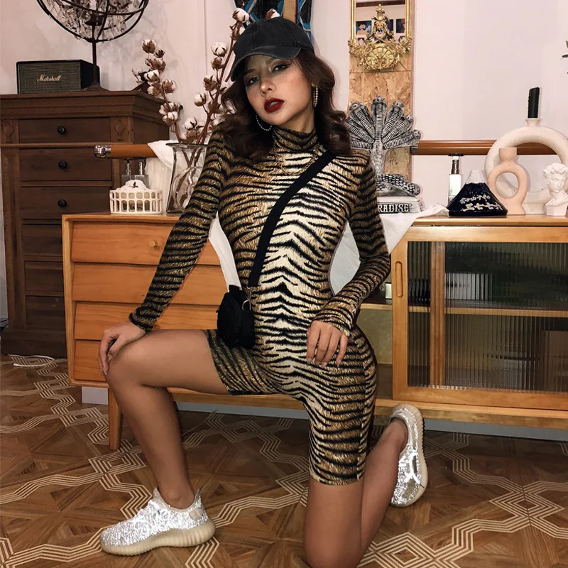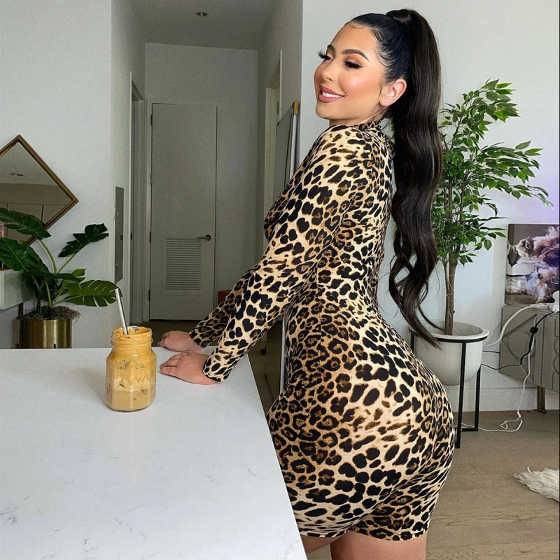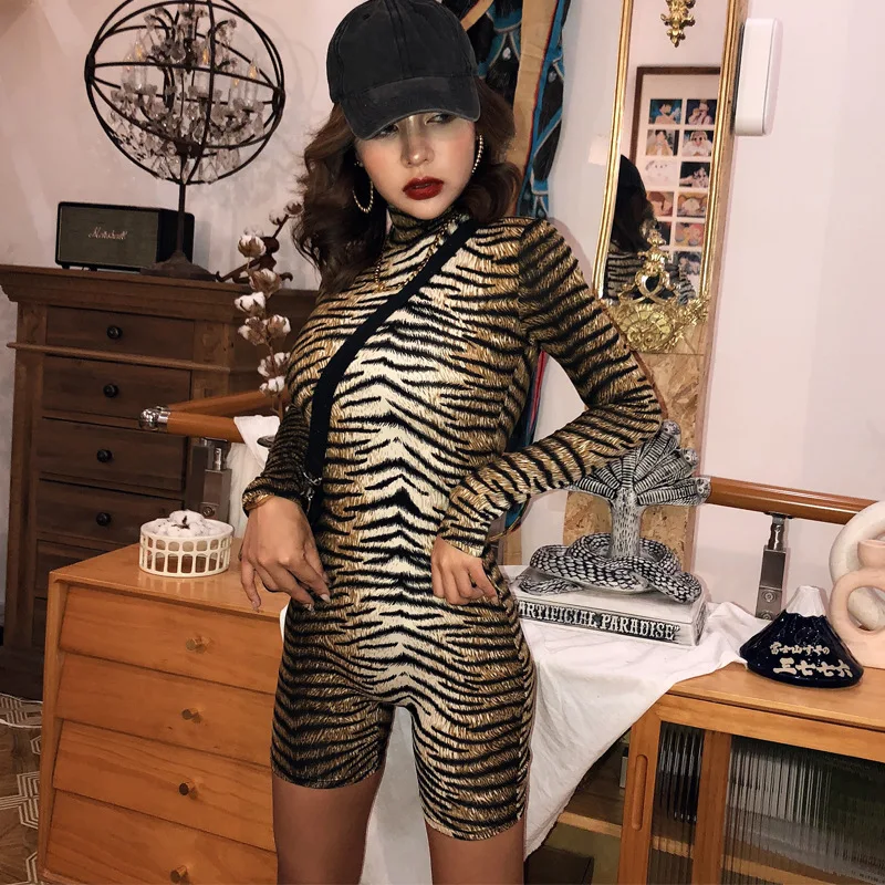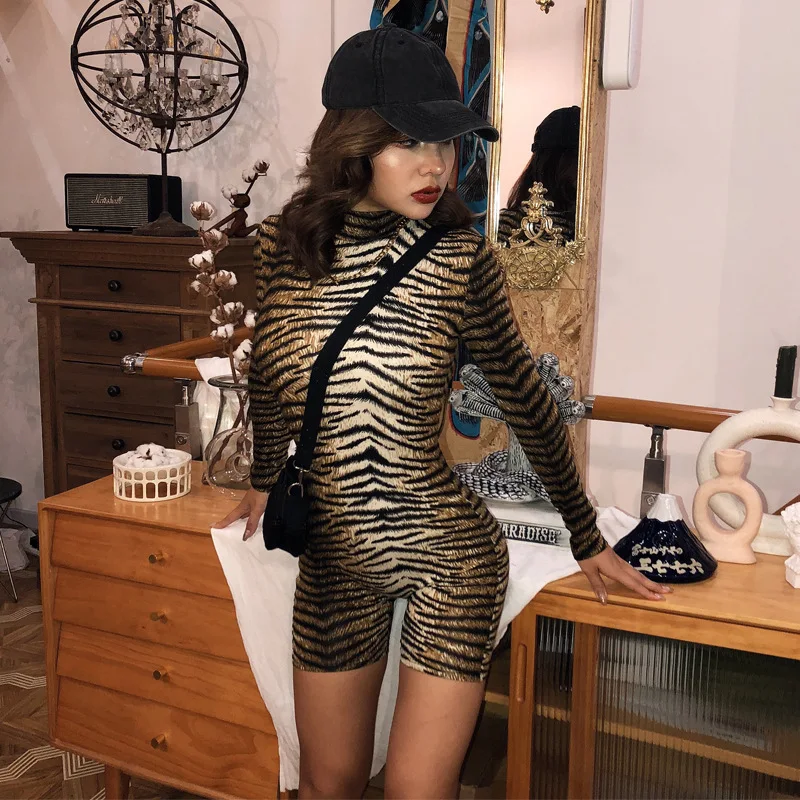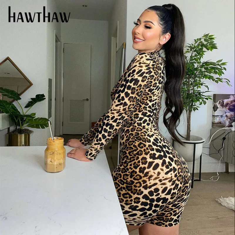 Женский Осенний Облегающий комбинезон HAWTHAW, Леопардовый принт, полосатый комбинезон с длинным рукавом, комбинезон для фитнеса, 2020
