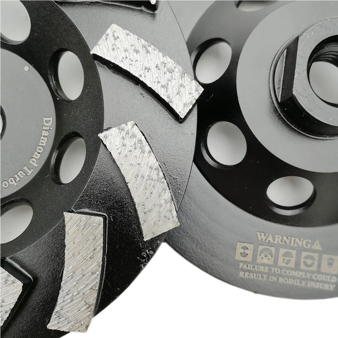 Спиральный турбо-дизайн сегментов и очень крупный алмаз обеспечивают очень высокую эффективность, очень высокую скорость шлифования. Если вам нужна Улучшенная очистка, пожалуйста, выберите колесо чашки с тонким алмазным зерном