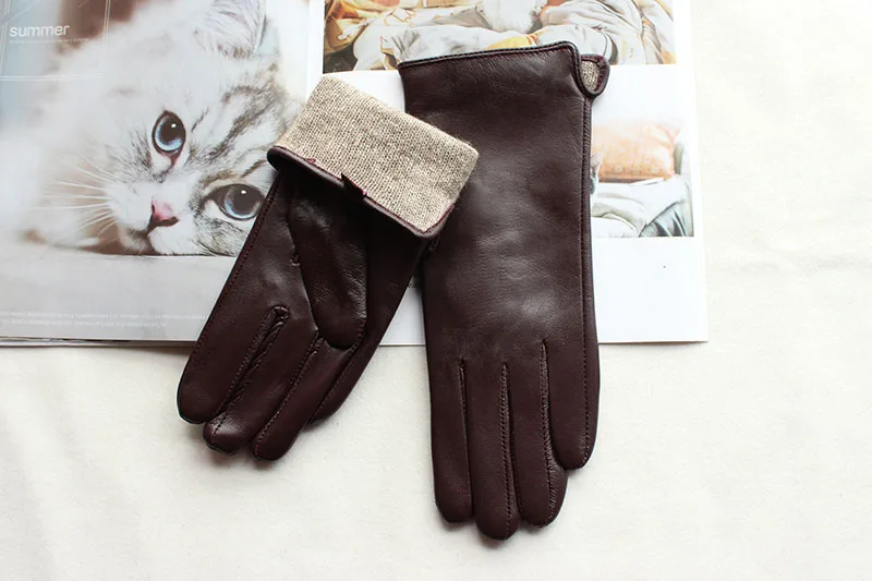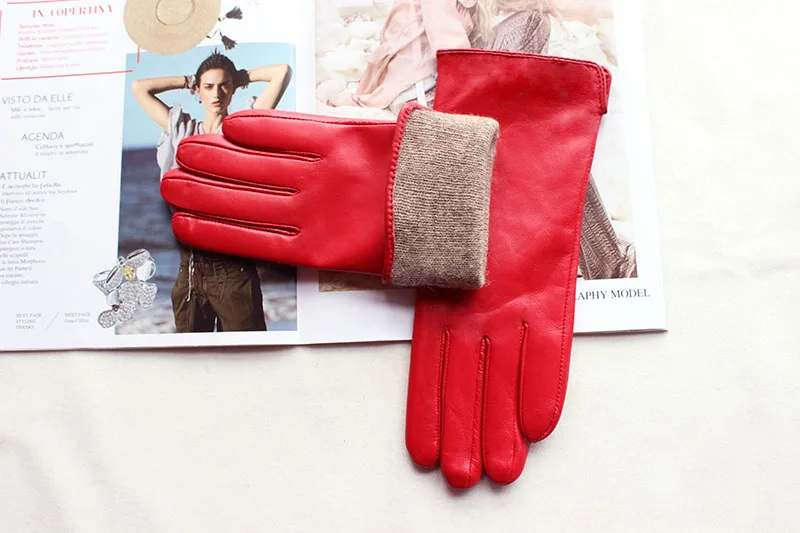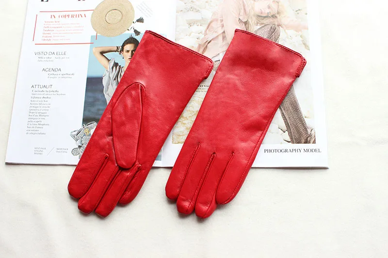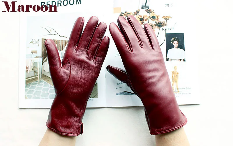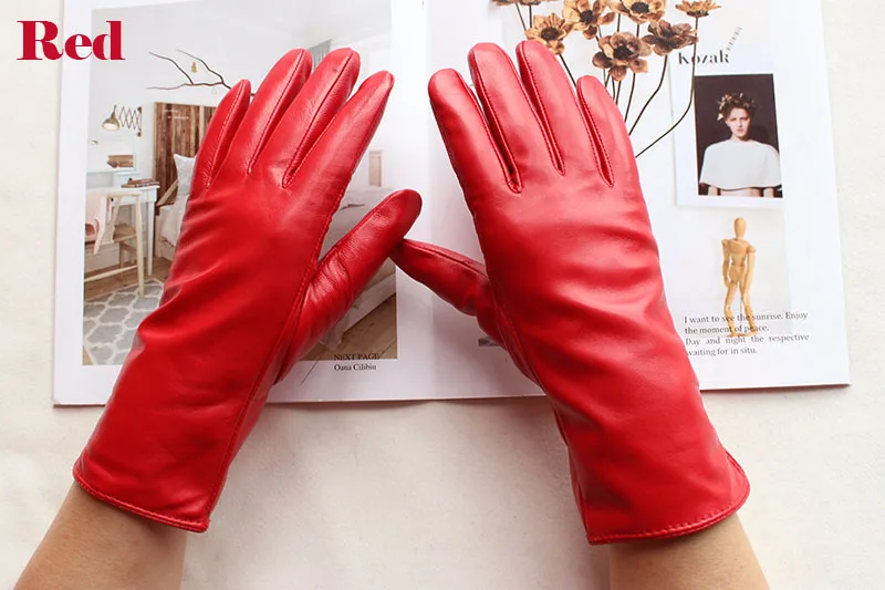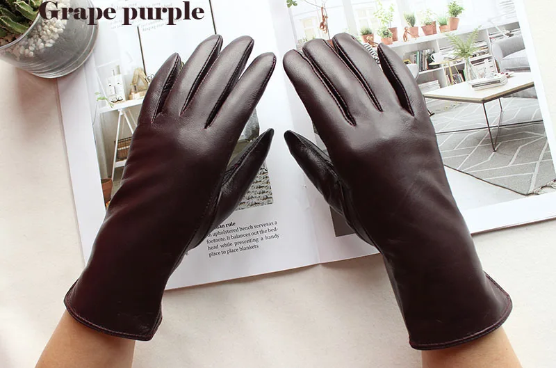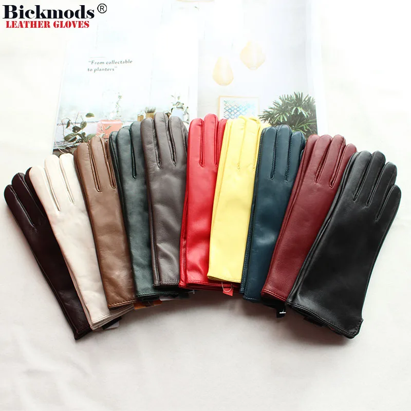 Кожаные перчатки из овечьей кожи, женские осенние теплые цветные флисовые подкладки, тонкие, для активного отдыха, для вождения на электровелосипеде