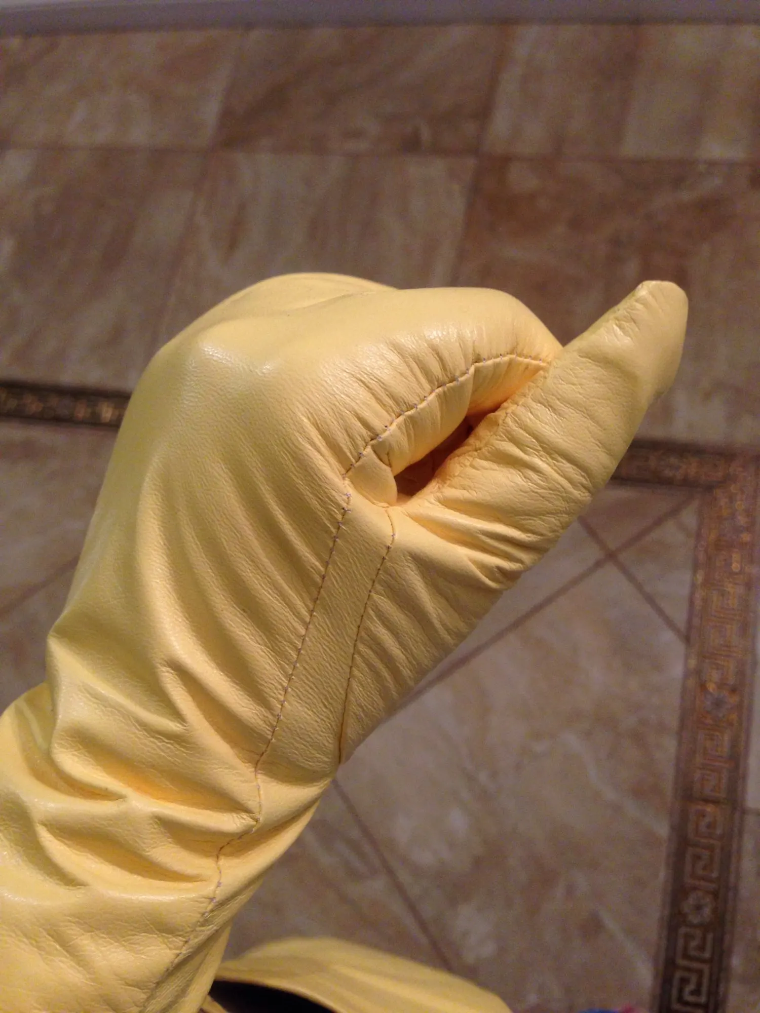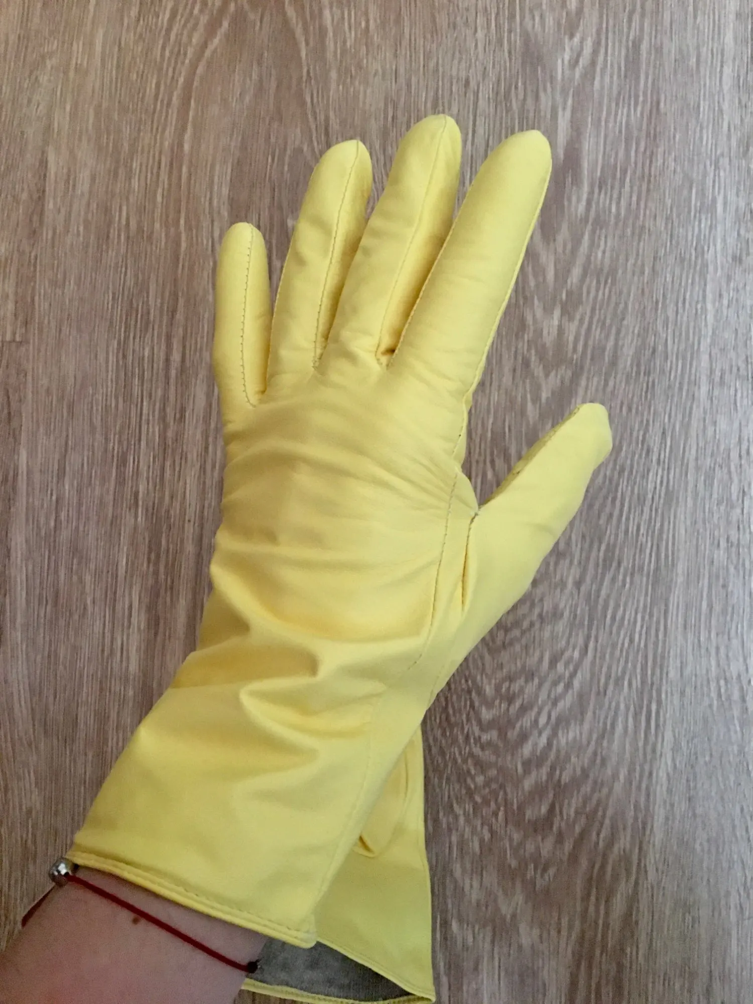 Кожа мягкая. Кожа тонкая. На весну. Швы ровные. На некоторых пальцах подкладка собирается в складку, когда одеваешь, думаю при носке разойдётся. Выбирала по размерной сетке, подошло для длинных пальцев. Размер на руке 8,5, даже можно на пол размера брать меньше если без длинного маникюра. Цвет желтый с примесью белого. Пастельный. Заказ пришёл быстро, получила через пакомат.