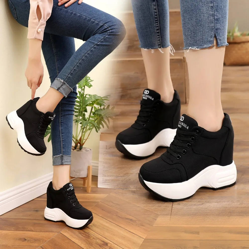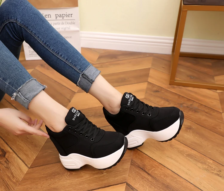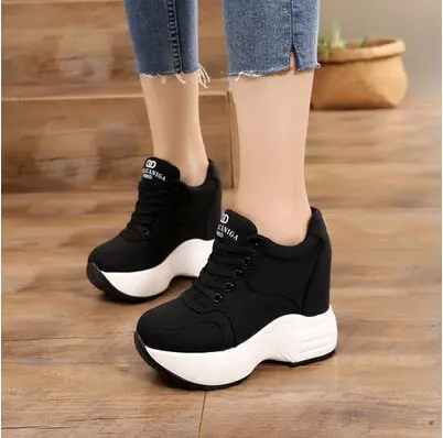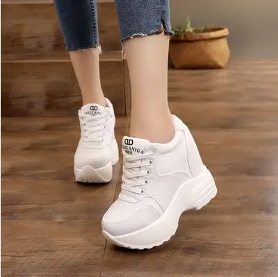Женские сетчатые кроссовки на платформе, белые дышащие кроссовки на танкетке 10 см, повседневная обувь для увеличения роста, осень 2020