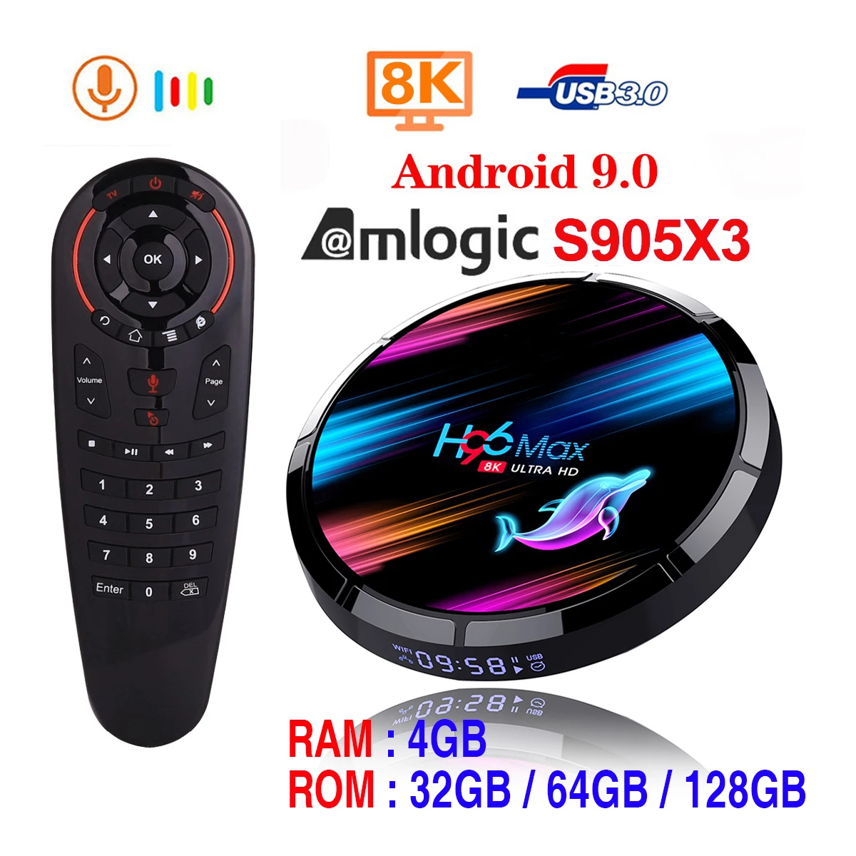 Смарт-ТВ-приставка H96 MAX X3, Android 9,0, 4 Гб 128 ГБ, Amlogic S905X3, 2,4G/5G, Wi-Fi, BT4.0, 1000M, 8K, Google Media Play, NexflixH96MAX Plus, Android TV Box