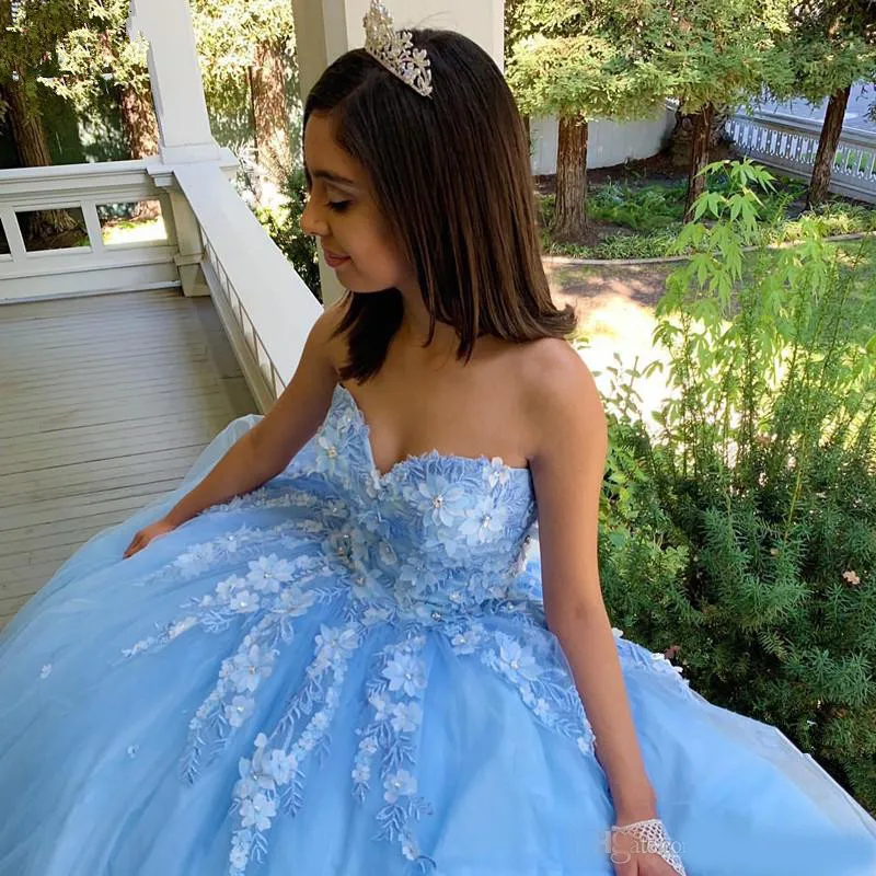 Женское бальное платье до пола, классическое бальное платье из тюля с цветами и жемчугом, 15 лет