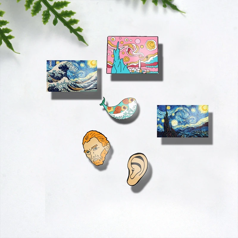 Оригинальная акриловая брошь Ван Гога Звездная ночь SONGDA, брошь на лацкан в виде Кита, эпоксидная брошь для художников, ювелирные изделия, школьные Значки для сумок, одежды