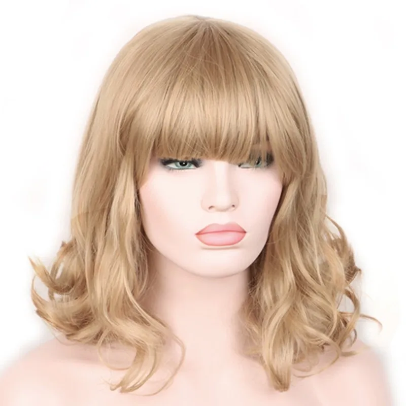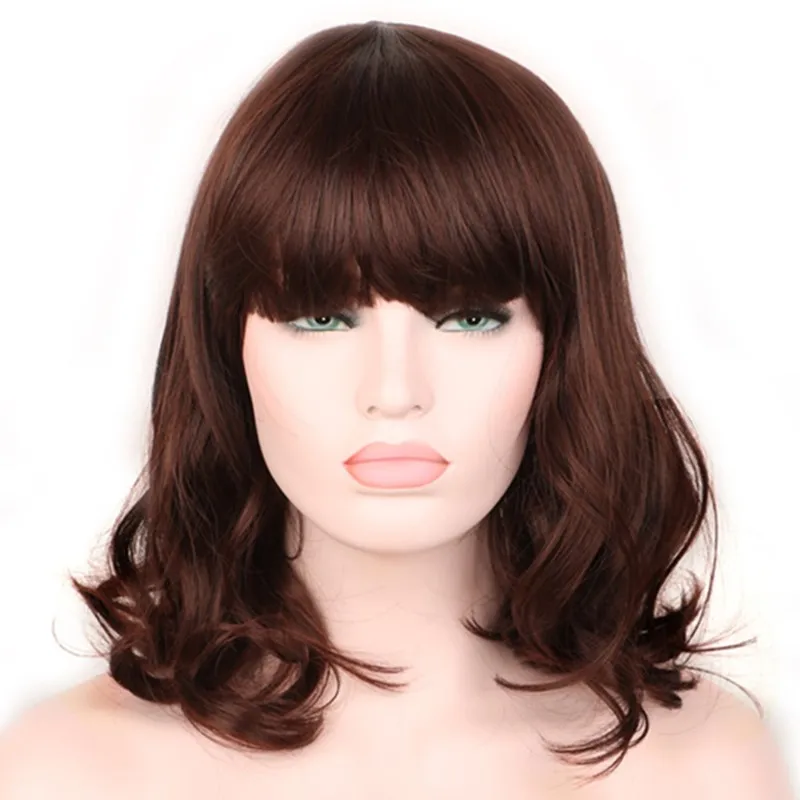 Парик WoodFestival женский с челкой, из синтетических волос, с волнистыми волосами, для косплея, с короткими париками Боба, блонд, натуральный черный, темно-коричневый