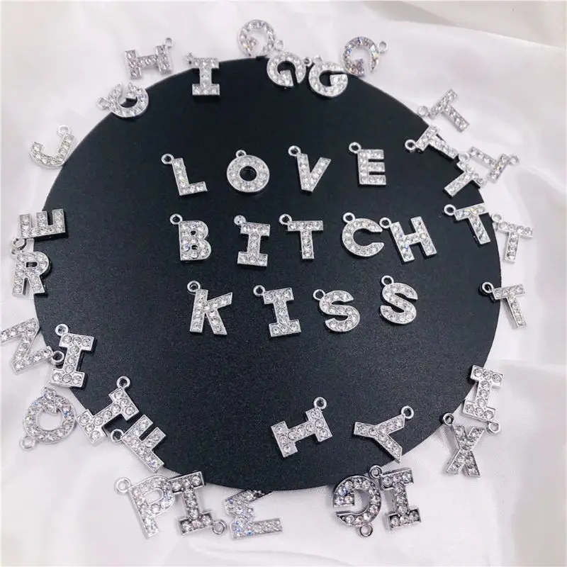 26 шт., подвески в виде амулет в виде буквы из страз с кристаллами алфавита и буквами, DIY ожерелья, браслеты, изделия для изготовления ювелирных украшений