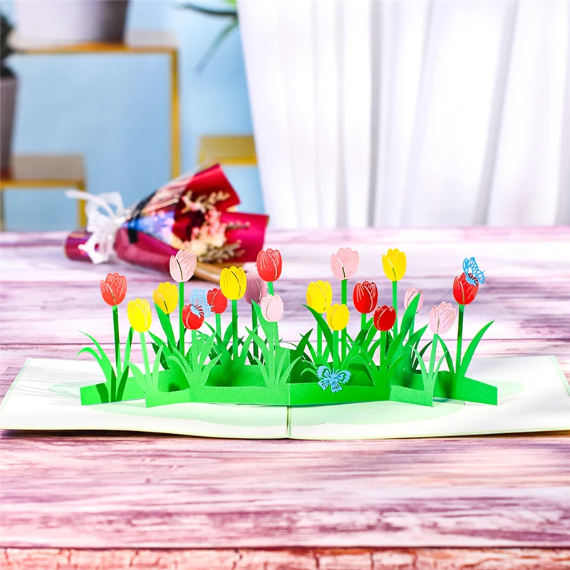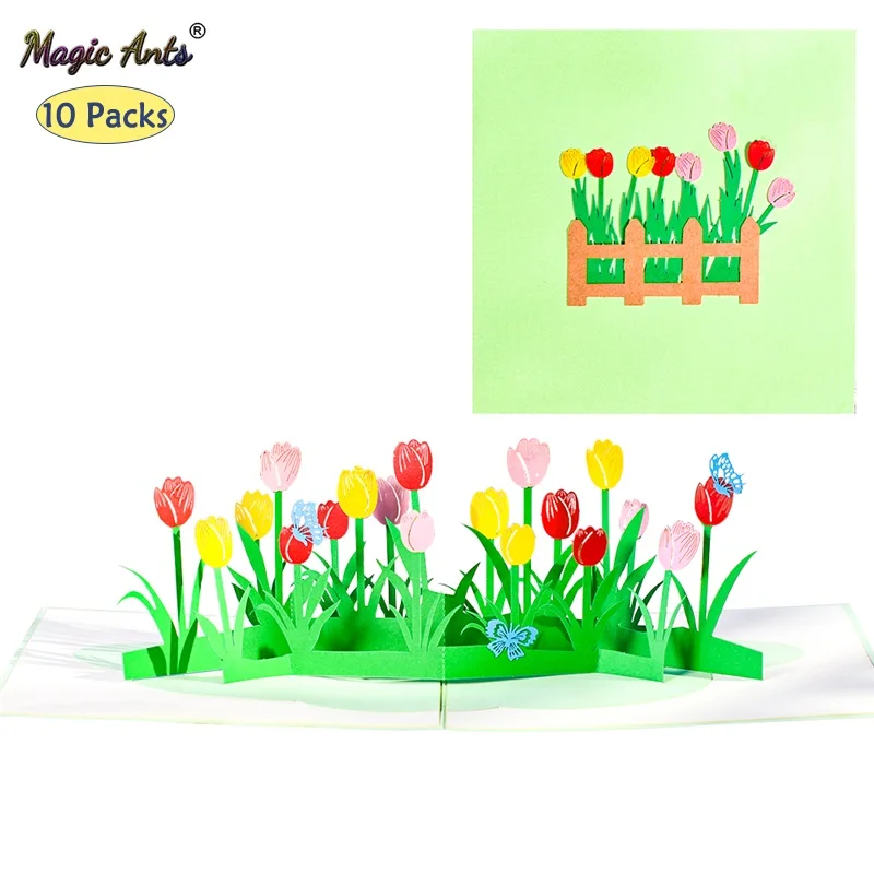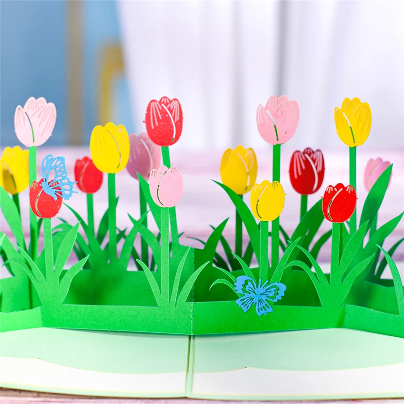 10 упаковок, всплывающие Цветочные открытки, 3D тюльпаны, поздравительные открытки, День Святого Валентина, хороший день матери, день рождения, юбилей, оптовая продажа, Suplier