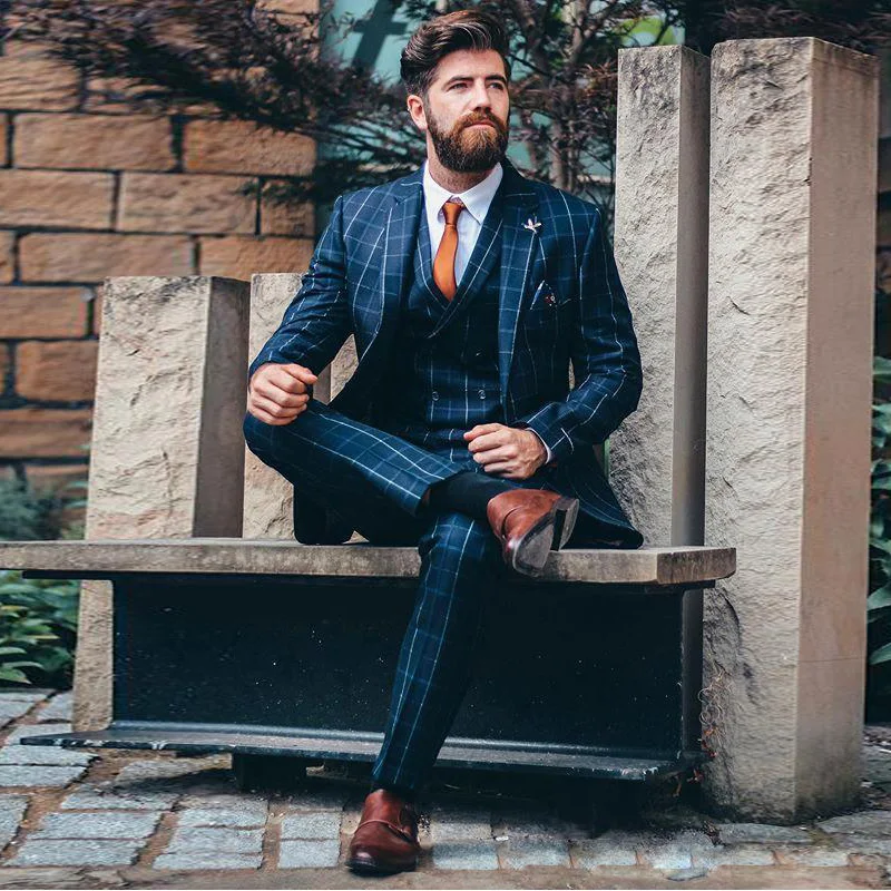 Классические клетчатые мужские смокинги Глен из трех предметов для свадьбы одежда для жениха с отложным воротником на одной пуговице индивидуальный блейзер + жилет + брюки