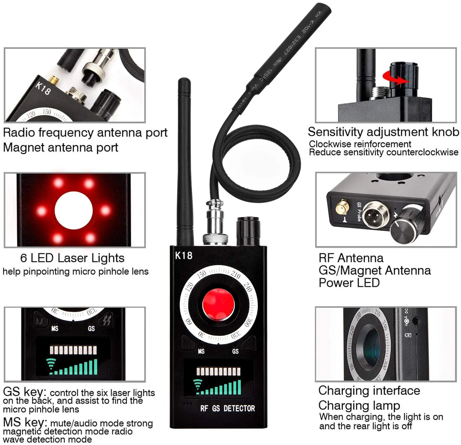 Изысканный прочный детектор радиосигнала анти-шпионская камера K18 ...