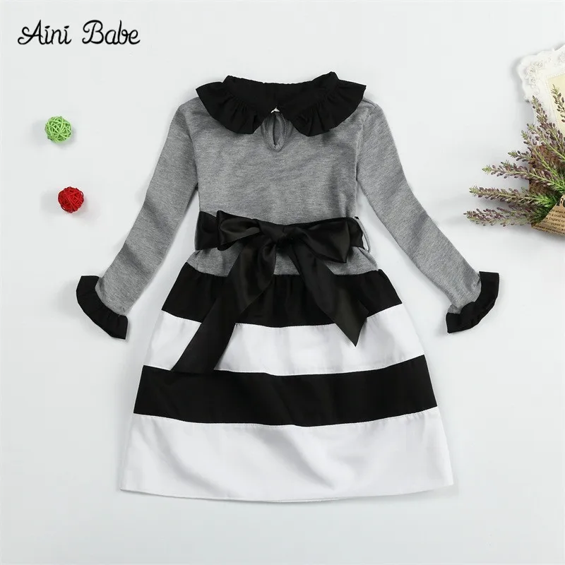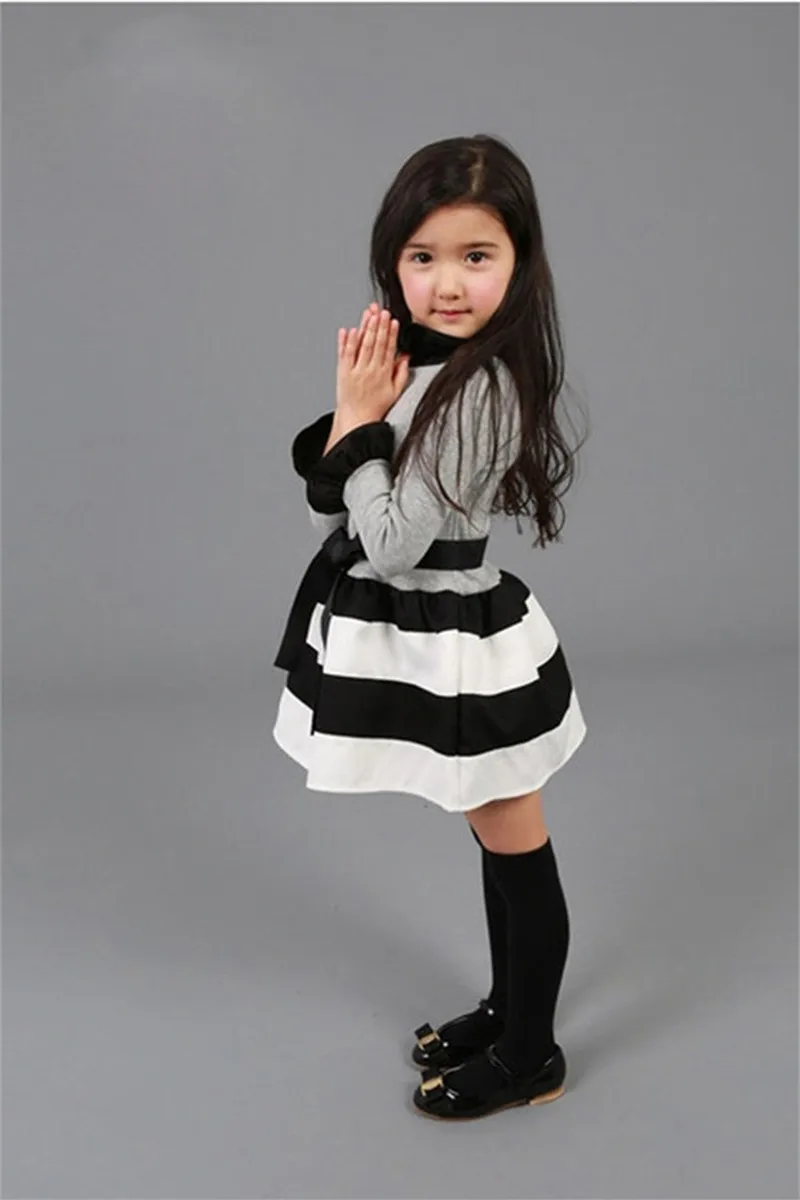Осенне-зимнее платье с длинными рукавами для девочек платье принцессы в горошек с бантом Повседневная одежда для маленьких детей Детские Вечерние платья на день рождения, От 3 до 8 лет