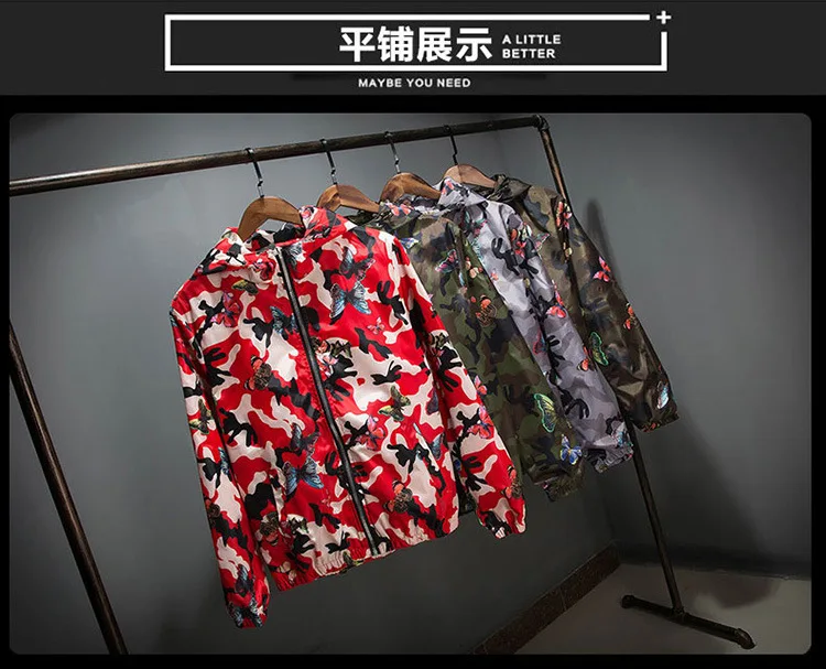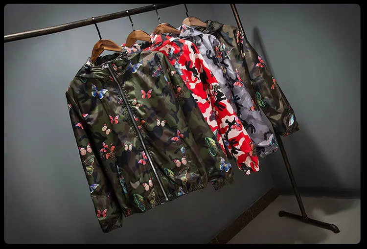 Женская тонкая ветровка с капюшоном, камуфляжная ветровка с бабочками, весна-лето 2020