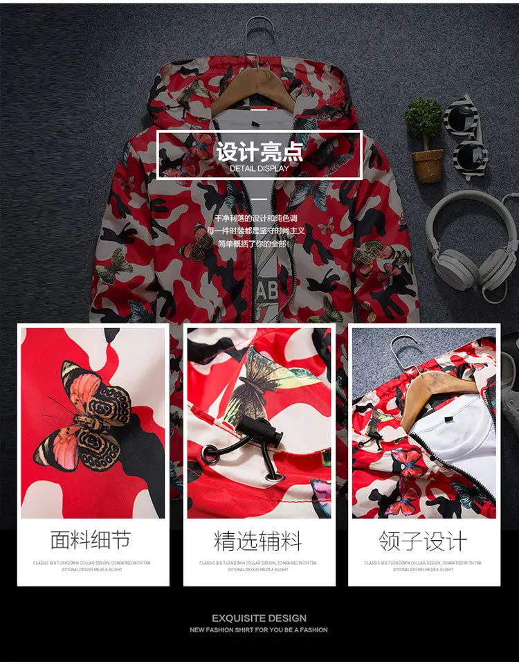 2021 Весенняя Мужская Уличная Повседневная камуфляжная худи с бабоч...