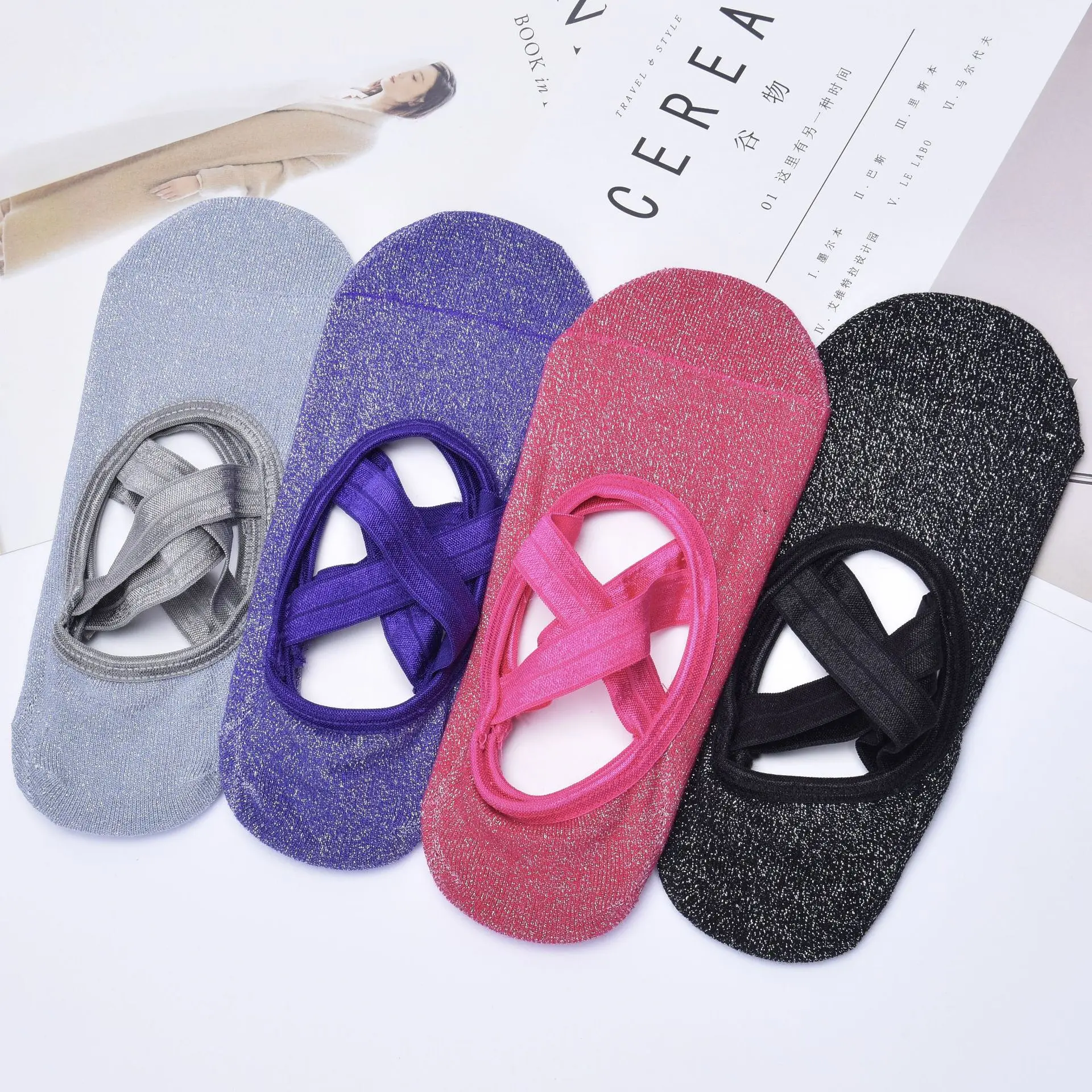 Носки для йоги колготки для танцев нескользящие спортивные женские носки с круглым носком и перекрестными ремешками