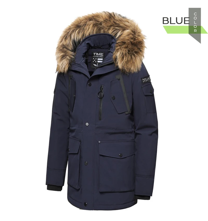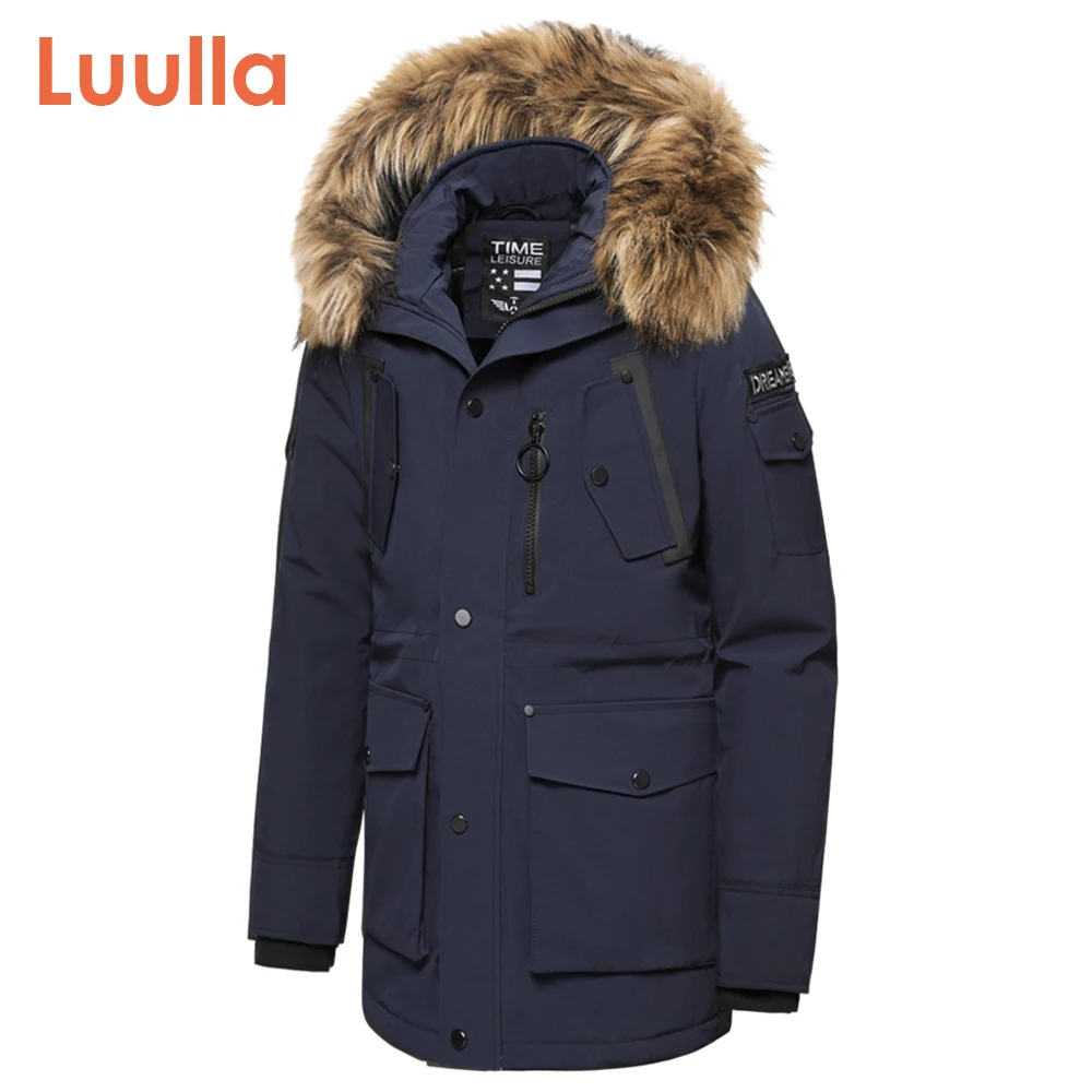 Мужская повседневная длинная куртка с воротником из искусственного меха, Зимняя Толстая парка с капюшоном и карманами, мужская верхняя одежда, водонепроницаемая парка, 2020