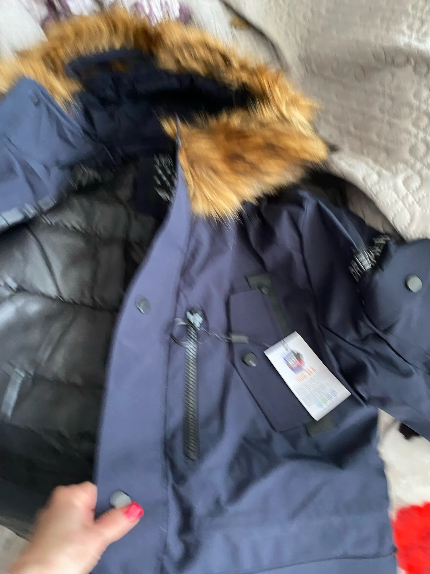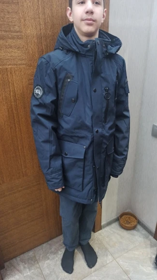 Качество куртки хорошее, немного торчат нитки, но не критично. Продавец перед отправкой сам связался для уточнения размера. На рост 180 см, вес 85 кг, ОГ 115 см, ОТ 100 см. посоветовал 2xl. Села нормально, под низ еще и свитер спокойно можно одеть. Т.к. изначально заказала детскую, продавец скинул ссылку на доплату за взрослую куртку. Заказ сделала 29.10, пришёл 17.11. Долго не мог уехать из Внуково) Ткань плотная, качественная. Цвет приятный. Нижние карманы глубокие, их внизу аж 4-ре, нагрудные карманы удобные для рук, внутренний карман не большой, без молнии, или пуговицы. Рукава по длине подошли отлично, внутри ещё и на широкой резинке хорошего качества. Есть ещё небольшой карман на рукаве, на кнопке. Мех отстëгивается, капюшон тоже можно отстегнуть. Ещё внутри есть вшитый шнур в районе пояса, если будет поддувать-можно подзатянуть) Куртка точно не продуваемая, как в холода себя покажет- добавлю отзыв позже. Товар и продавца рекомендую!