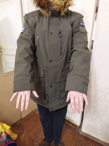 Классный пуховик за свои деньги. Немного шуршащая ткань и нелепый фальш карман под замком на левой стороне- единственные недостатки и те чрезвычайно маленькие. Куртка довольно тёплая даже для зимы Кольского полуострова. Размер подобрал по отзывам. Продавец всё же не поленился уточнить. Всё отлично. Огромное спасибо