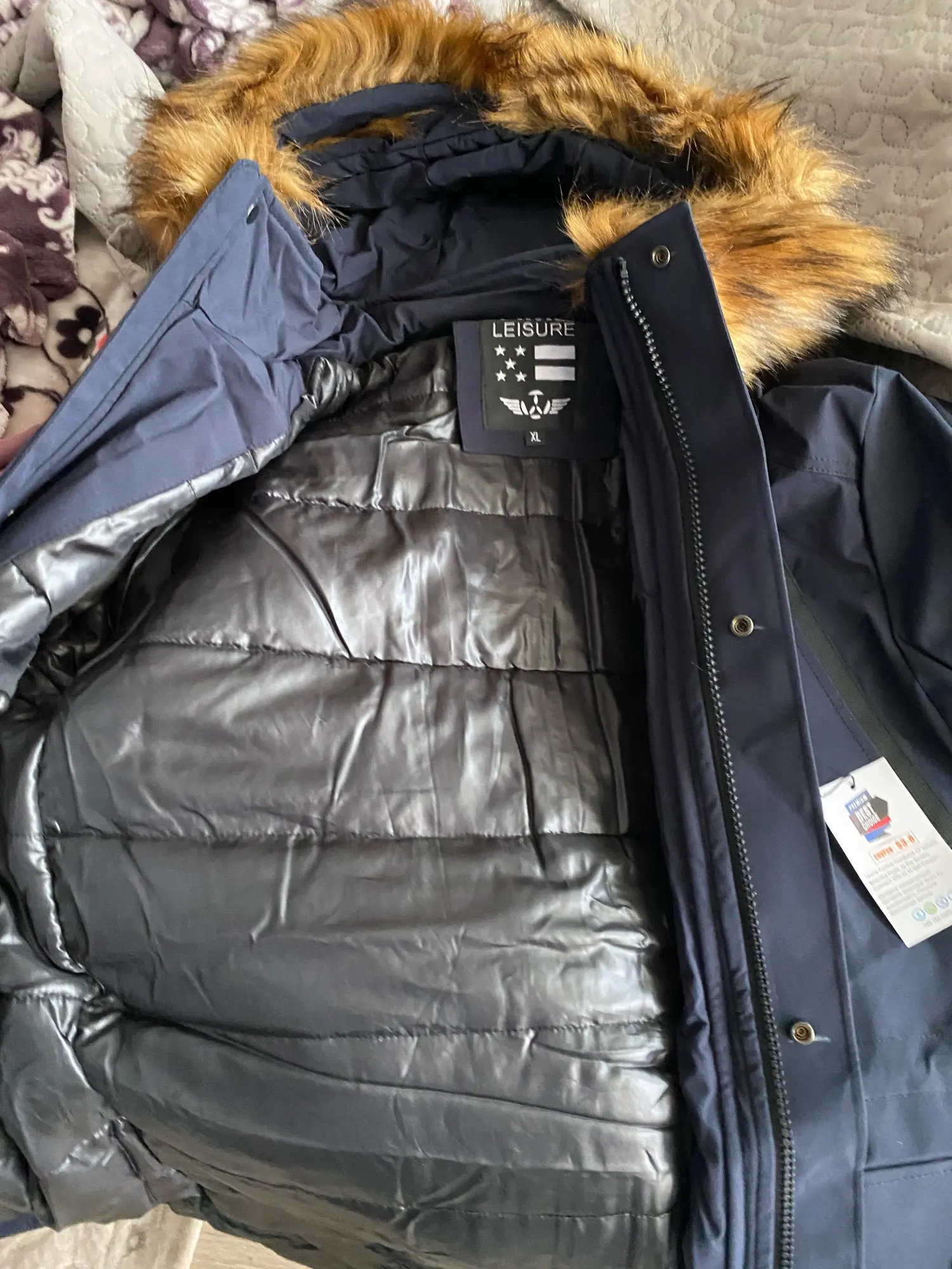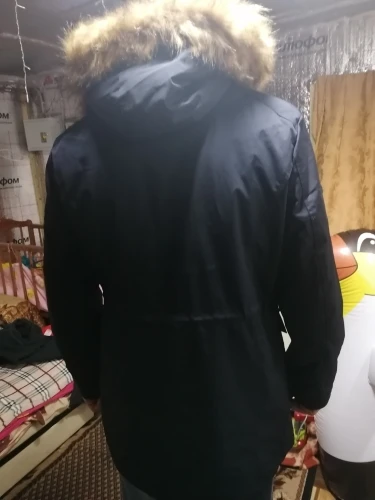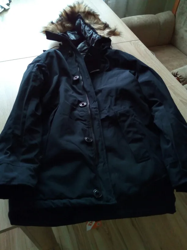 куртка пришла немного другого фасона и цвет прислали черный.Мужу конечно понравился больше этот фасон и цвет на росс.50 заказали XL,села куртка хорошо даже есть немного запас.Мех отстёгивается, рекомендую к покупке