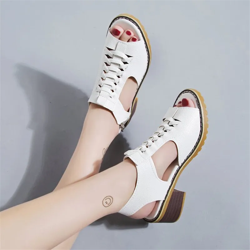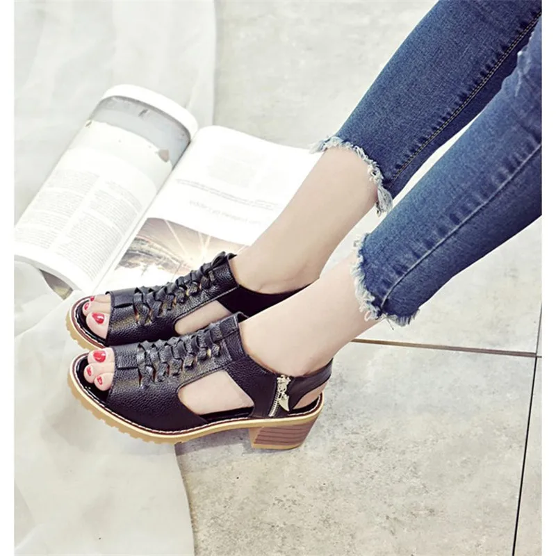 Женские босоножки в римском стиле, летние туфли с квадратным каблук...