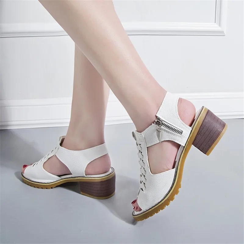 Сандалии женские на квадратном каблуке, Босоножки с открытым носком, на молнии, с металлическим украшением, в стиле ретро, летняя обувь для студенток