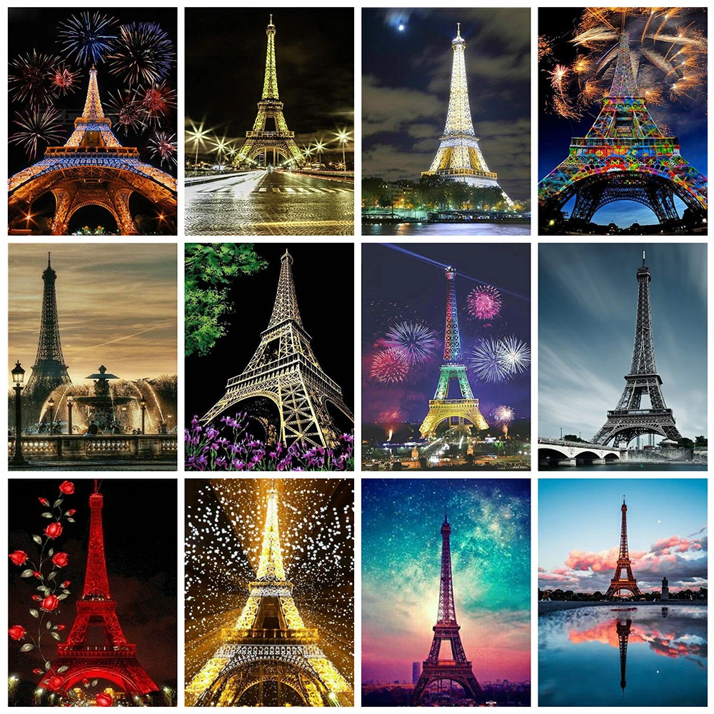 Полноразмернаякруглая алмазная живопись, Эйфелева башня, 5D Бриллиантовая вышивка, пейзаж, домашний декор, картина Стразы
