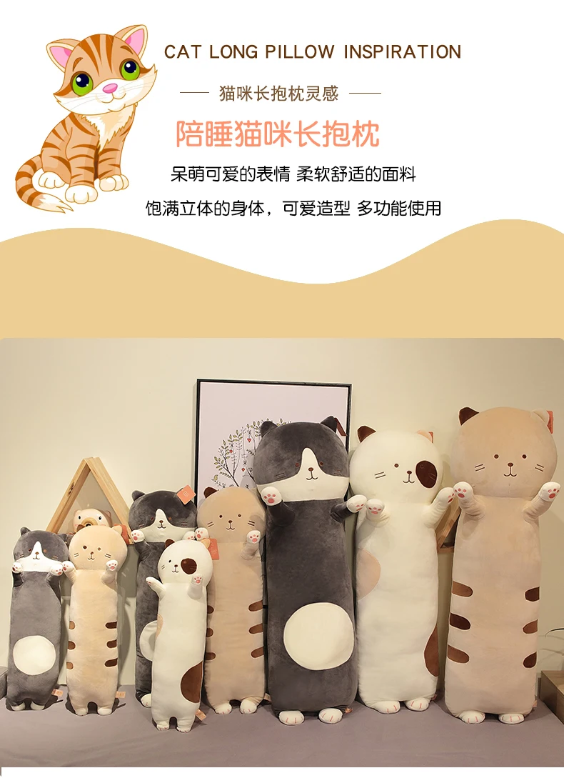 Новинка Kawaii плюшевая набивная подушка в виде кошки мягкая плюшевая подушка в виде кошки длинная подушка в виде животных детские игрушки Рождественский подарок для девочек