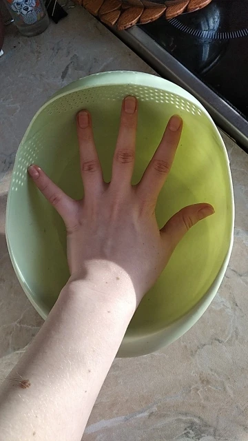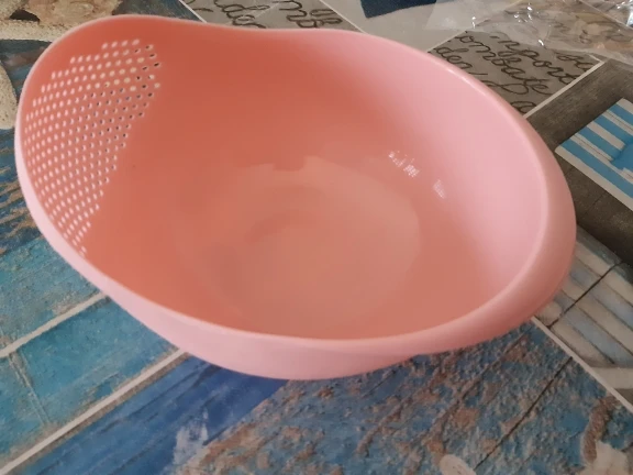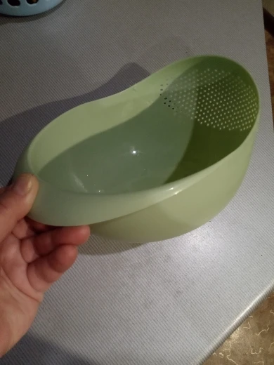 Очень красивая чаша, цвет как на картинке, не сломался, очень удобно мыть рис или чечевицу! Я рекомендую!
