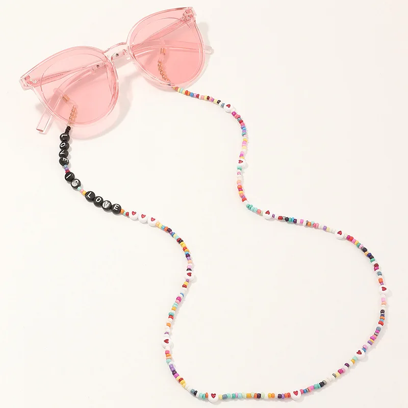 Упаковка: 1 шт. цветная цепочка для очков с английскими буквами и жемчугом
