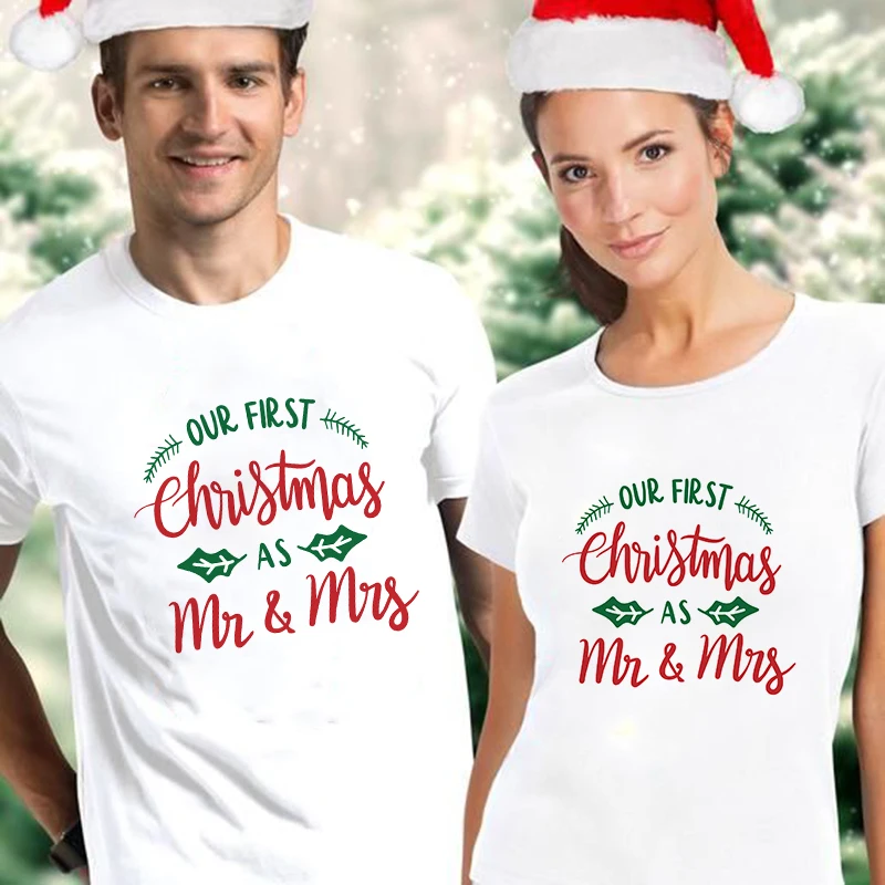 1 шт., одинаковая футболка для влюбленных на наше первое Рождество, футболки с рисунком в стиле Харадзюку, Семейные футболки, одежда с короткими рукавами, 2020
