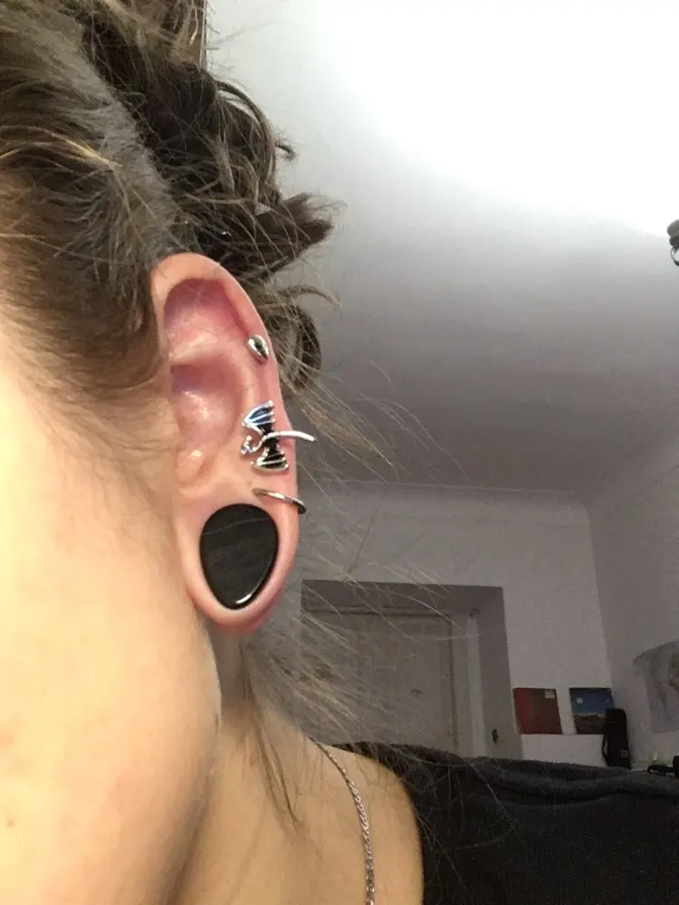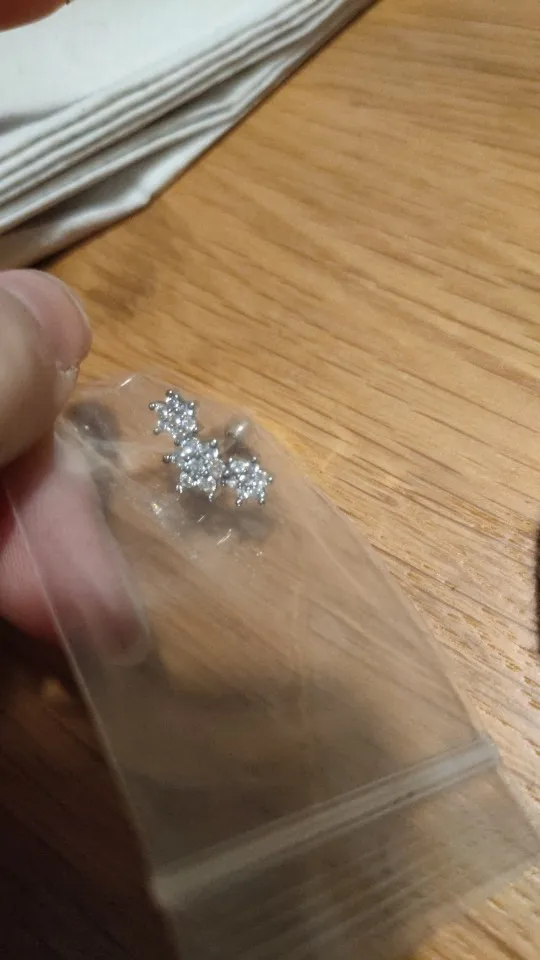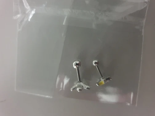 Милейший продавец положил колечко в подарок! Правда, его нужно разжимать, чтобы надеть) А серьга с нло была упакована с двумя дополнительными стержнями разной длины! Спасибо большое! Устроила чудесную новую композицию на своих ушках!