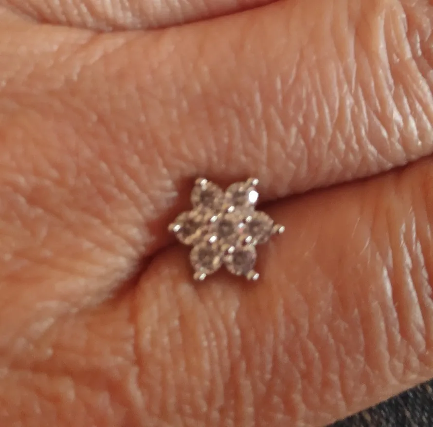 Все ровно как на картинке! Сережка очень красивая. Но сама игла очень толстая, для моего прокола в хряще не подошла :(