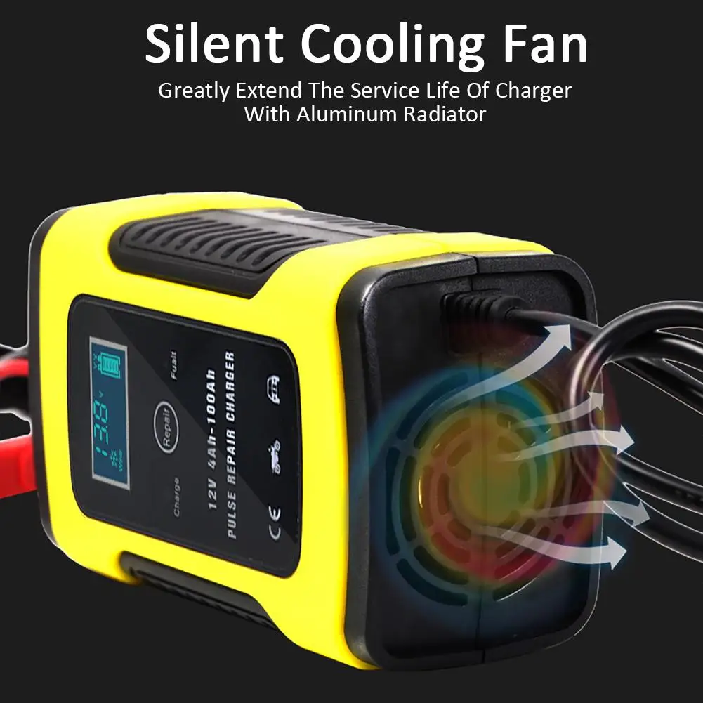 Автоматическое зарядное устройство для автомобильного аккумулятора, интеллектуальный тип ремонта, быстрая зарядка, свинцово-кислотный цифровой ЖК-дисплей, запчасти для авто, аксессуары