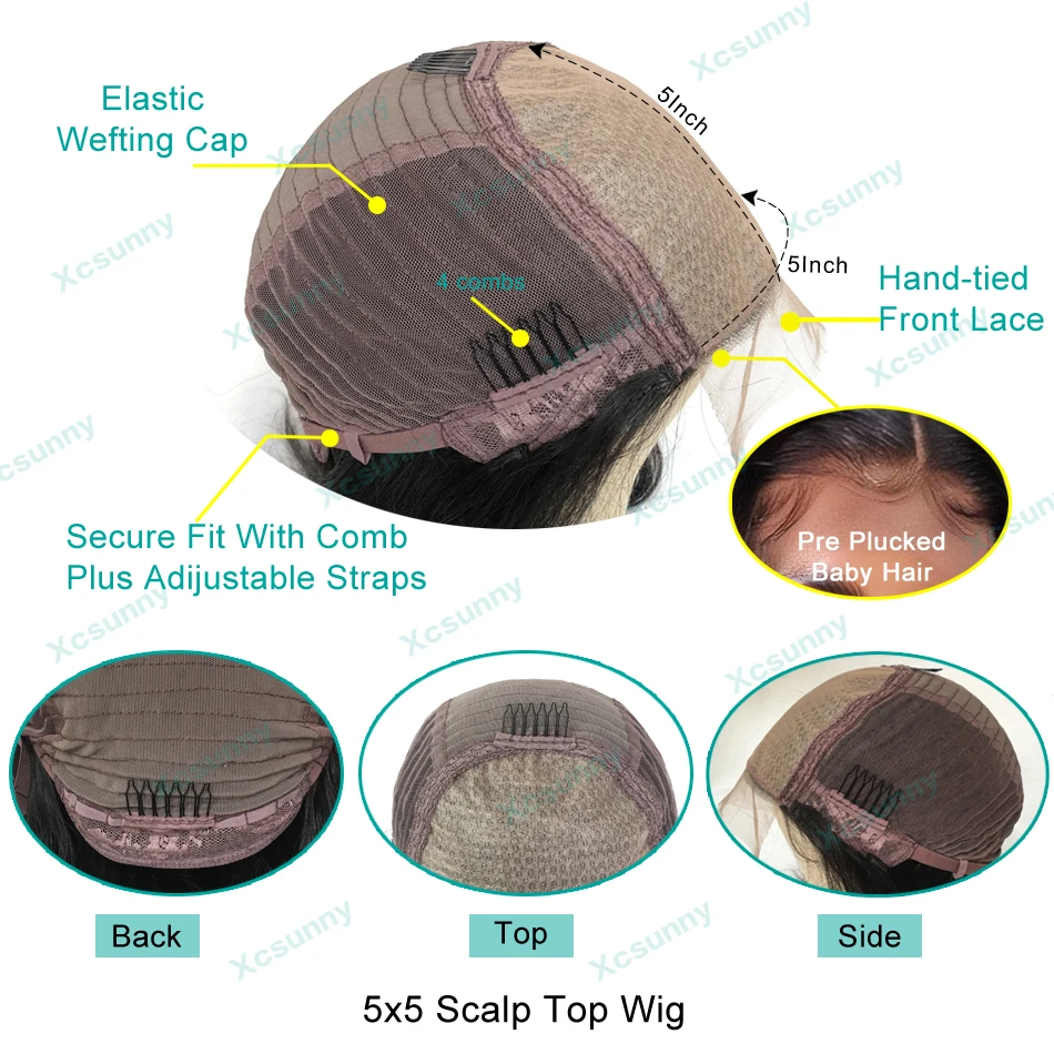 Тип парика 1:5x5 парик из искусственной кожи головы Тип парика 2: 13x6 кружевной передний парик Цвет волос: натуральный цвет, закрытие до 1B Плотность волос: 150% 180% 200% Размер шапки: средняя крышка по умолчанию Детские Волосы: по всему периметру Линия натуральных волос: Да и предварительно выщипывается Отбеленные узлы: Да