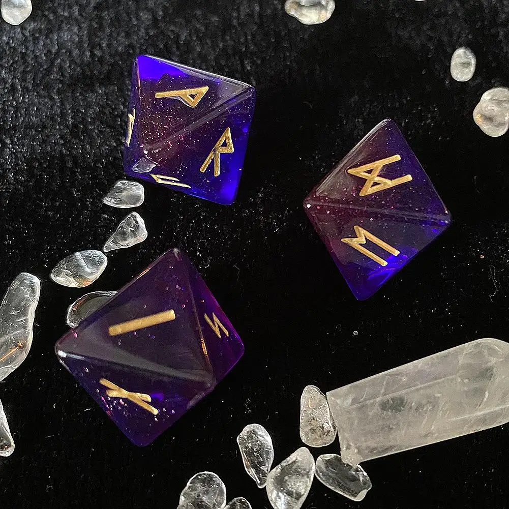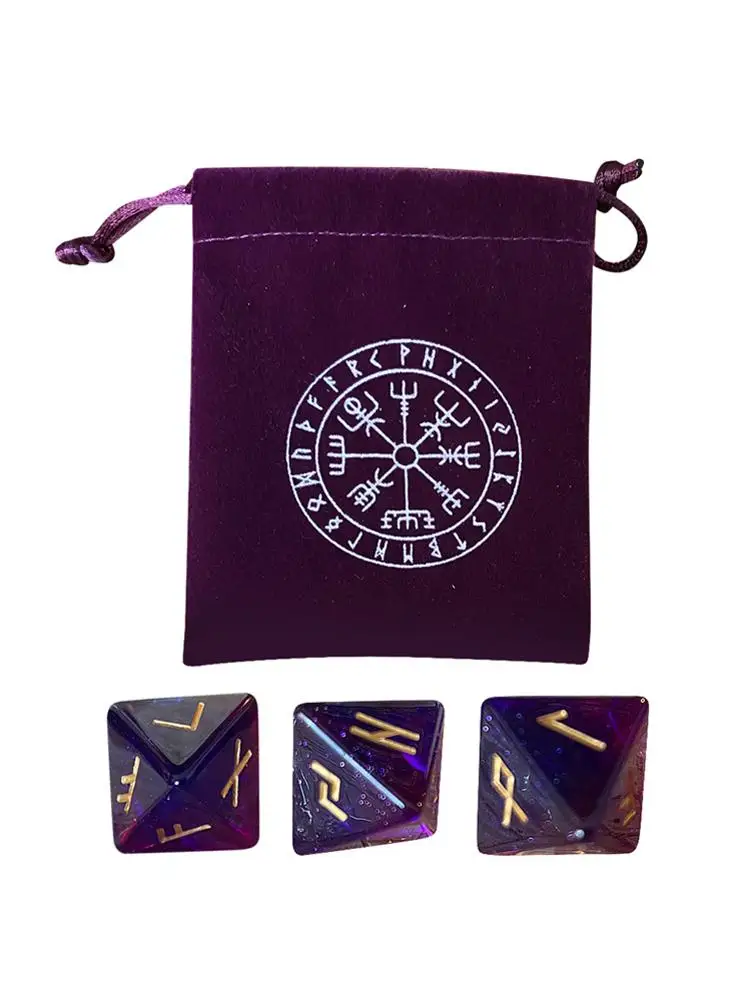 Набор многогранных кубиков 3 шт. в ассортименте, кости-руны с фиоле...