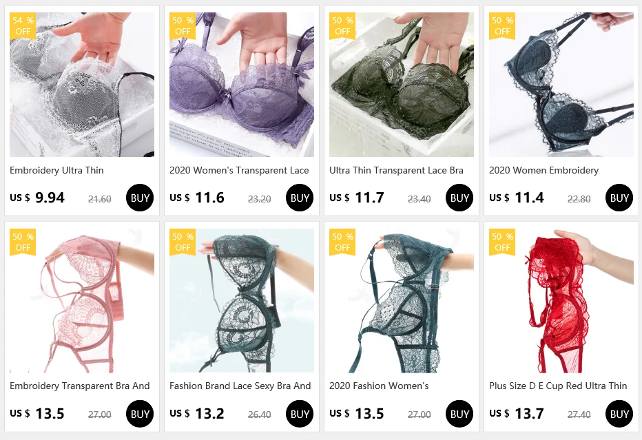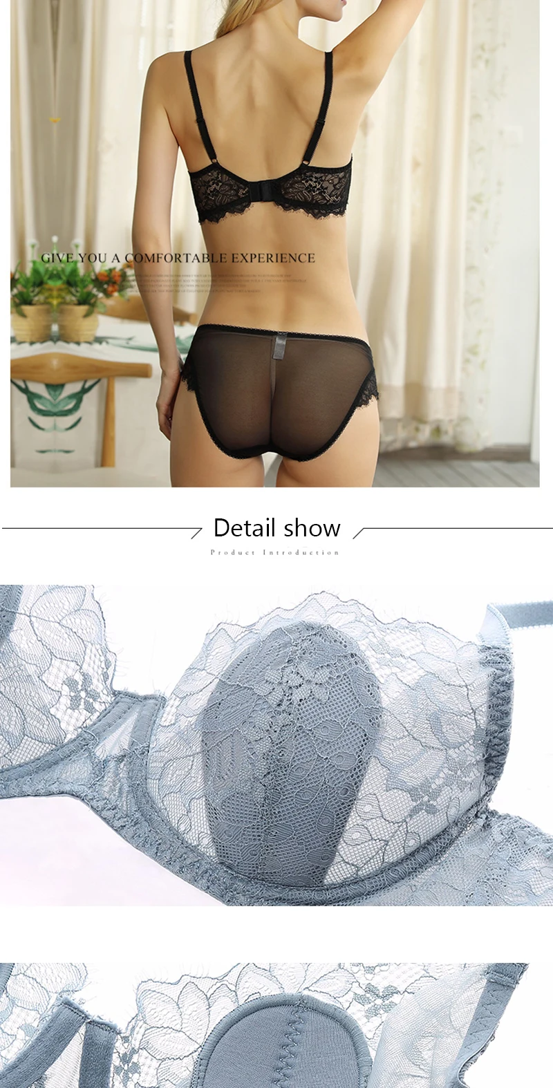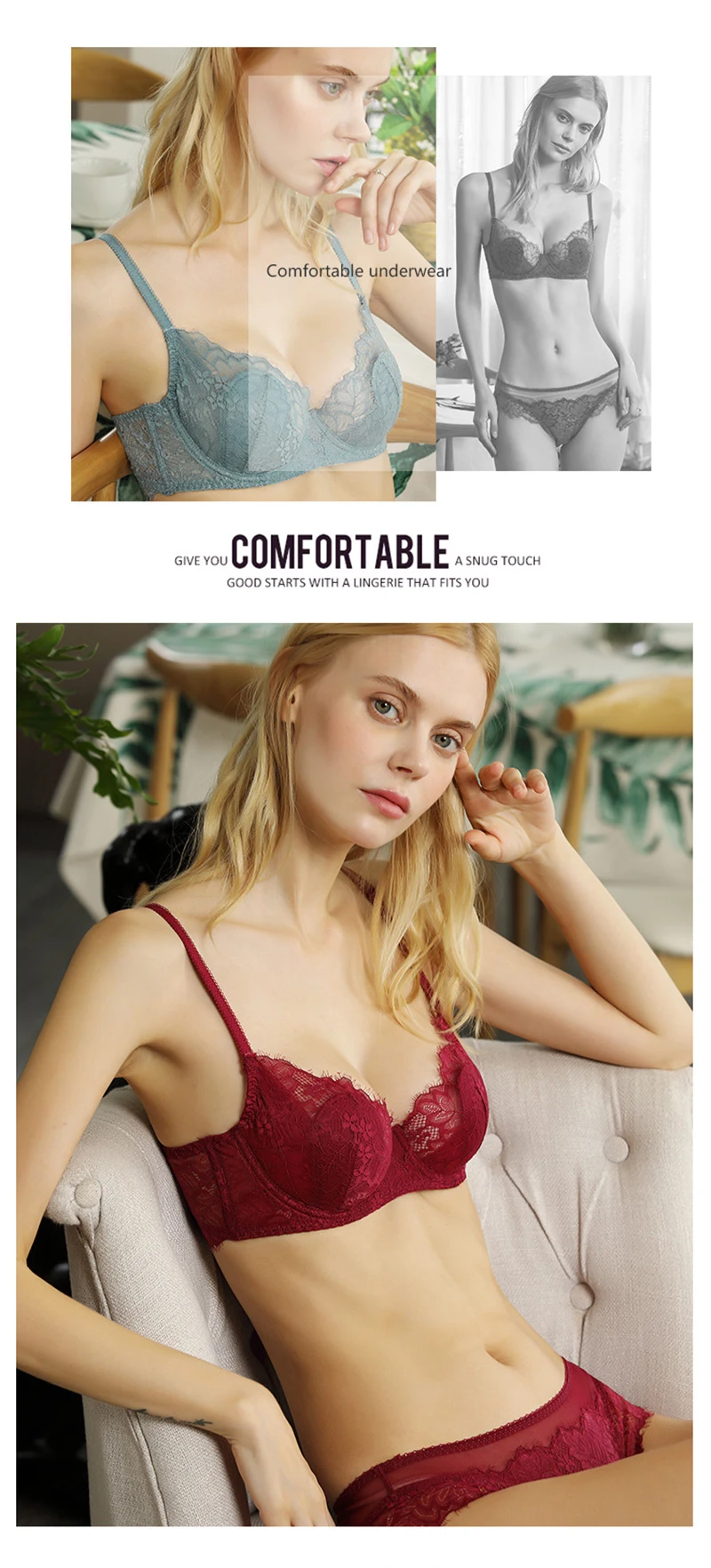 Комплект женского ультратонкого прозрачного нижнего белья, кружевной бюстгальтер пуш-ап и трусики, 2020