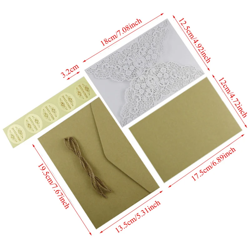 1 комплект карт = 1 шт. карман для лазерной резки + 1 шт. комплект + 1 шт. внутренняя пустая карта + 1 шт. конверт + 1 шт. наклейка