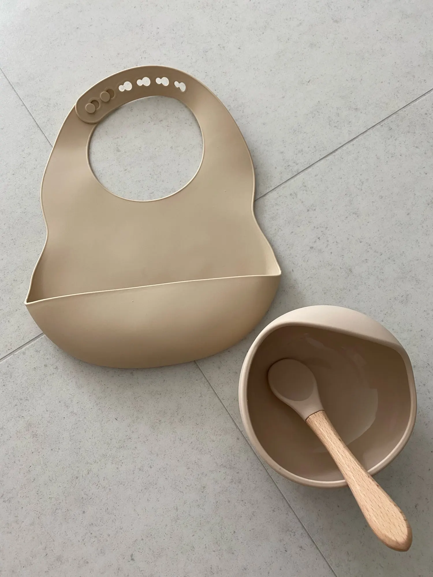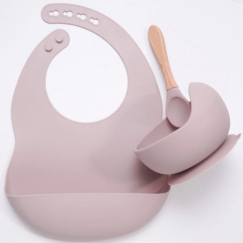 Детская силиконовая посуда без бисфенола А, водонепроницаемый слюнявчик, слюнявчик, однотонная чаша на присоске и ложка для детей
