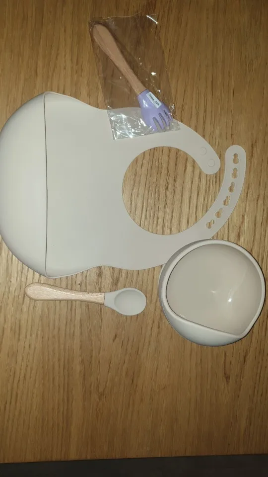 отличная посуда. всё совпадает с описанием. тарелочка на вид маленькая, но помещается много. Хорошо пахнет, не противно. мягкий силикон и приятный. ложечка хорошо приклеена пользуемся, не отходит. Тарелочка хорошо прилепает. очень довольны. сын более интенсивнее начал сам есть из неё. В отзывах писали про вилочку, мне её не положили. с продавцом не общалась. заказал 13.02. пришло 13.03.
