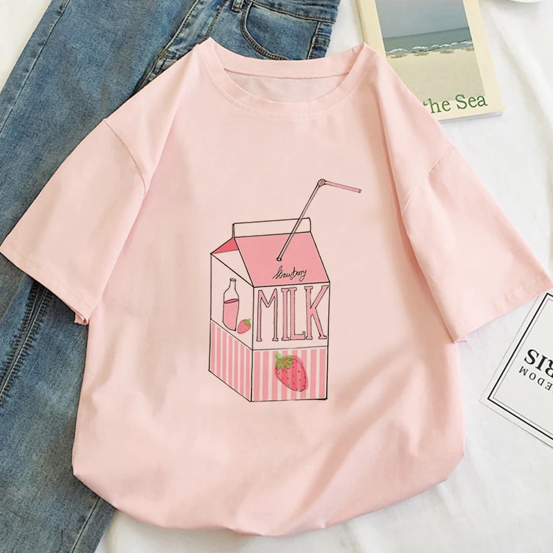 2020 New Summer Fashion Korean Tshirt Harajuku Aesthetic Pink Tops