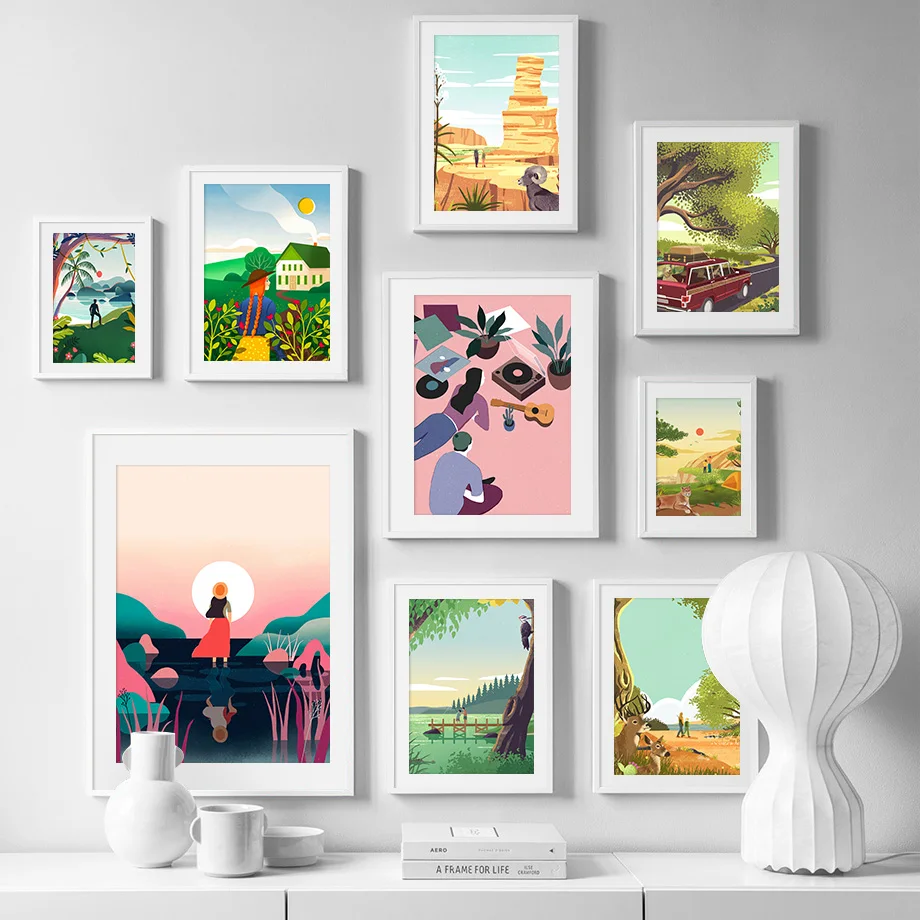 Абстрактные постеры и принты с изображением Человека и девушки на закате в скандинавском стиле, Картина на холсте, настенные картины для декора гостиной, пейзаж из путешествия