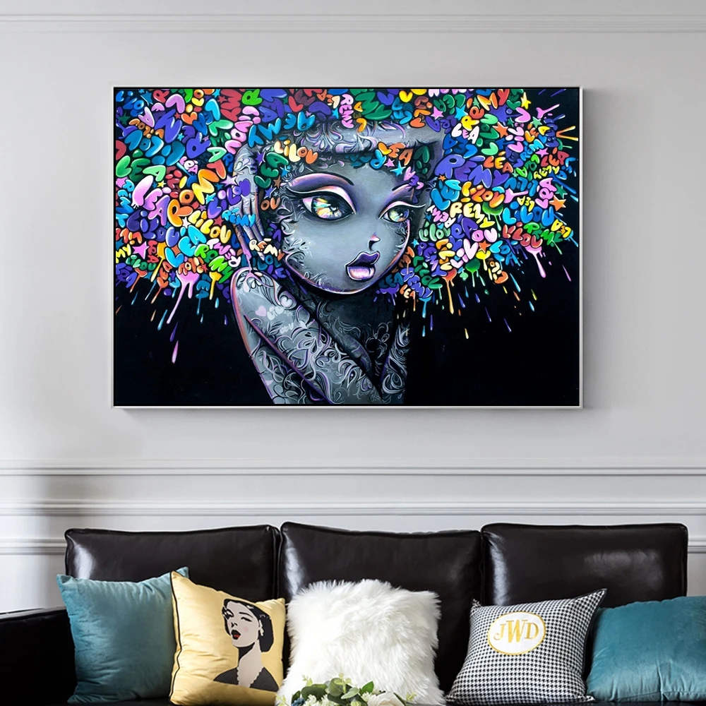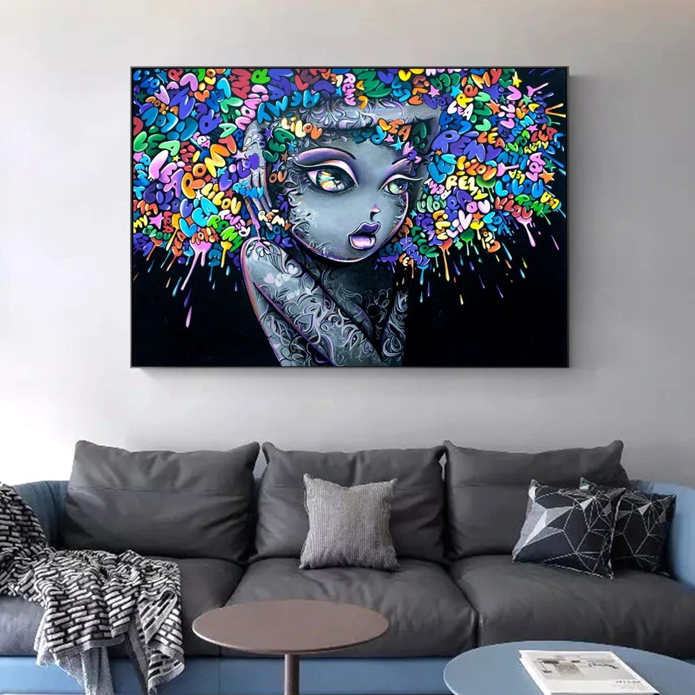 Абстрактная Картина на холсте с милыми граффити для девочек, картины для гостиной, поп-арт, уличное искусство, холст, принты для украшения дома