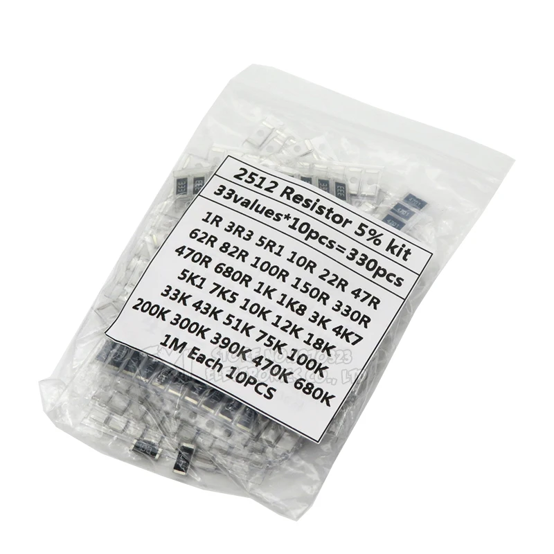 Набор резисторов 330 шт.лот, электронные резисторы 5% 2512 SMD, комплект резисторов в ассортименте 10R 47R 100R 10K 470K 680K smd