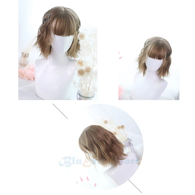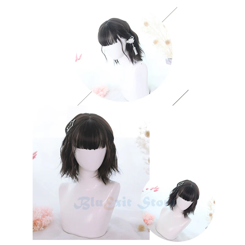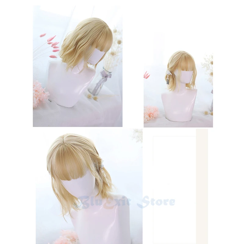 3 цвета блонд Лен черный Лолита парик золото JK Harajuku Фея короткая волна кудрявые сладкие челки девушки косплей синтетические волосы