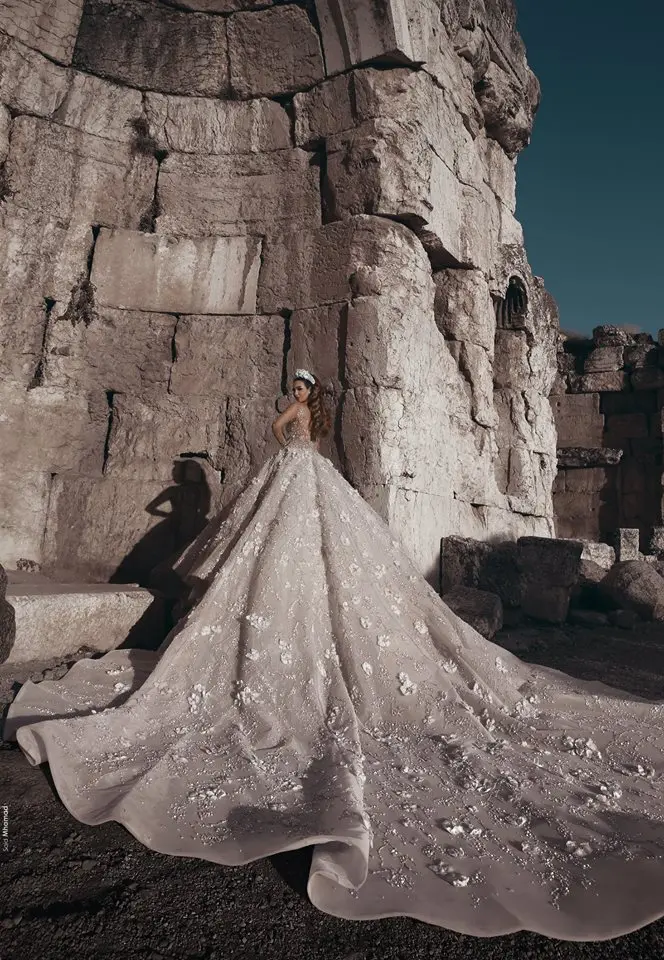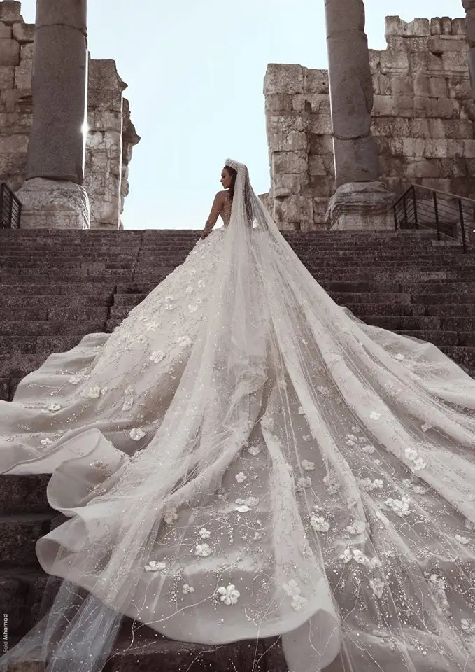 Роскошное бальное платье А-силуэта с кристаллами, свадебные платья, прозрачные кружевные свадебные платья с длинным рукавом, свадебное платье с 3d-аппликацией в виде часовни со шлейфом