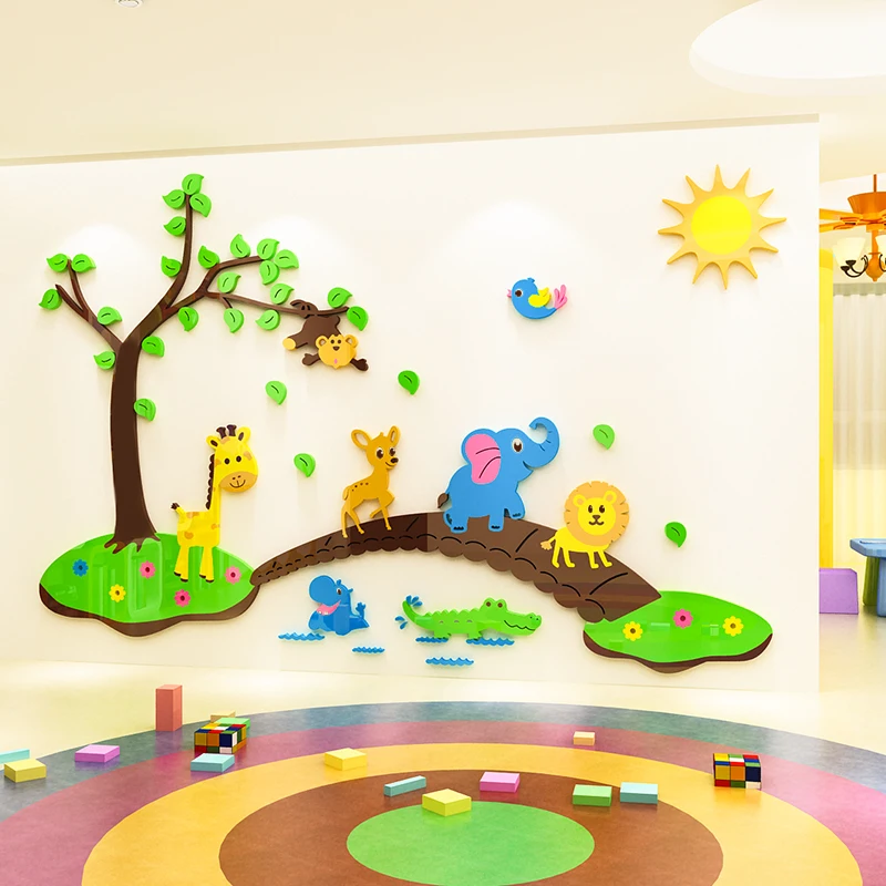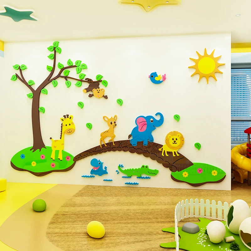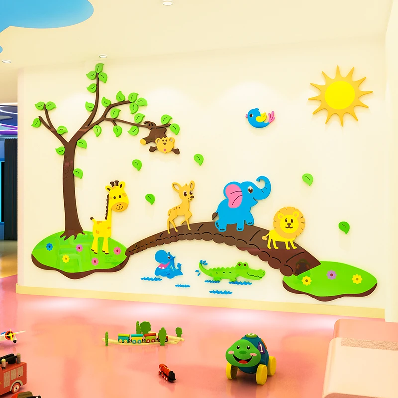 3D-наклейки на стену с изображением милых животных, в стиле 3D, для детского сада
