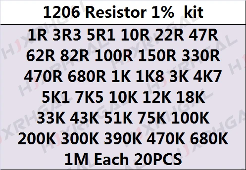 Комплект резисторов 1206 SMD, комплект в ассортименте igmopnrq 1ohm-1M ohm 1% 33valuesX 20 шт. = 660 шт.