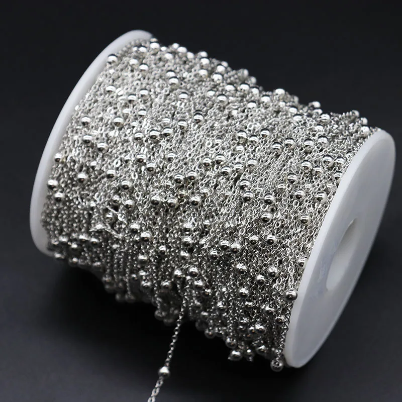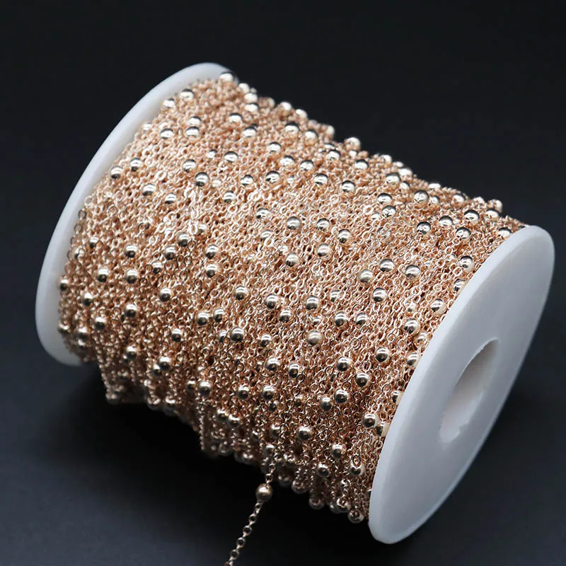 Цепочки Mibrow медные, 5 млот, 1,5 мм, 2 мм, с 3 мм 4 мм бусинами, ожерелья, цепочки для браслета, для самостоятельного изготовления ювелирных изделий сделай сам