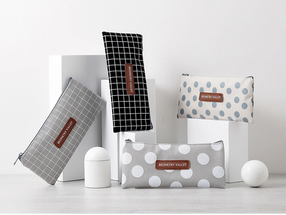 Чехол для школьного карандаша с геометрическим рисунком в горошек