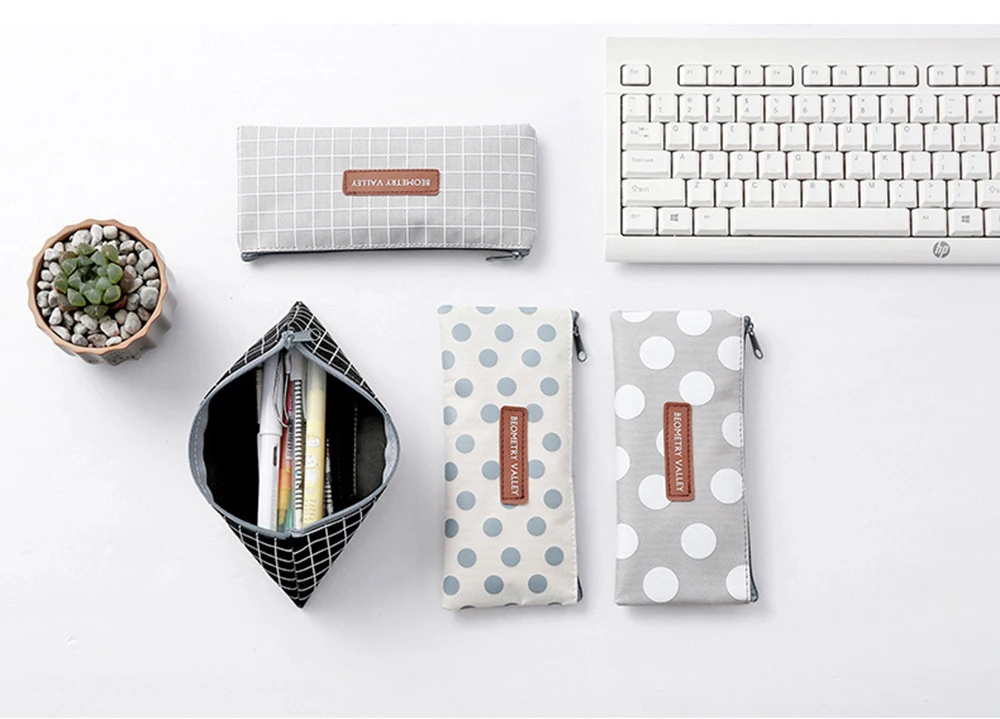 Кавайная простая сетчатая тканевая сумка в горошек для карандашей, ...