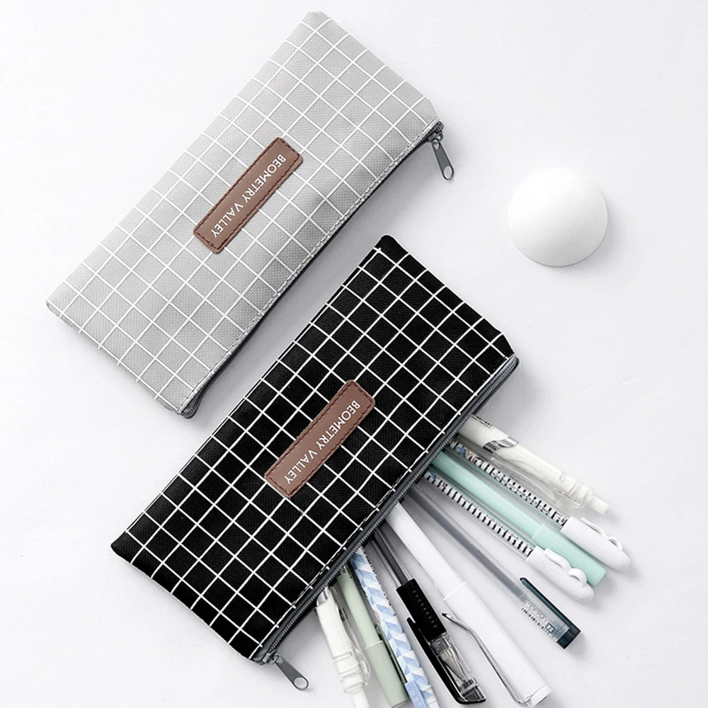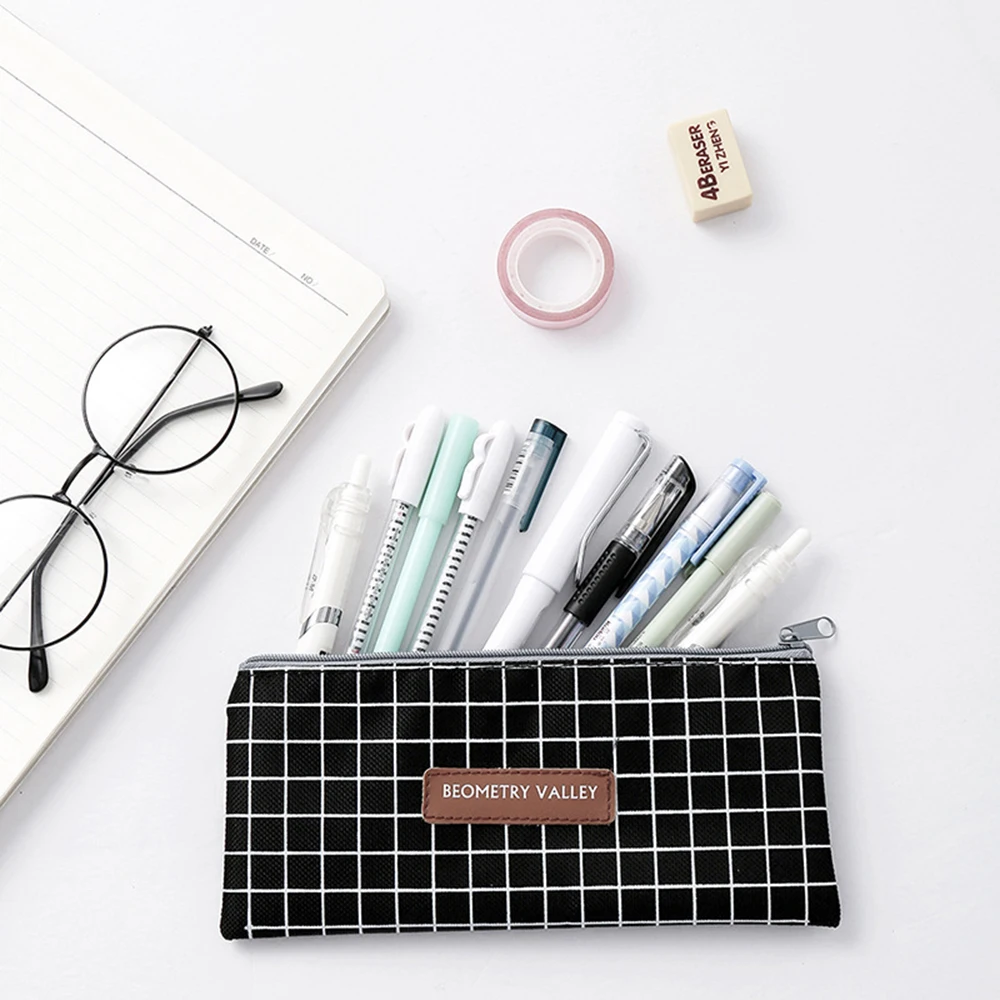 Холщовый чехол для карандашей, симпатичный простой полосатый сетчат...